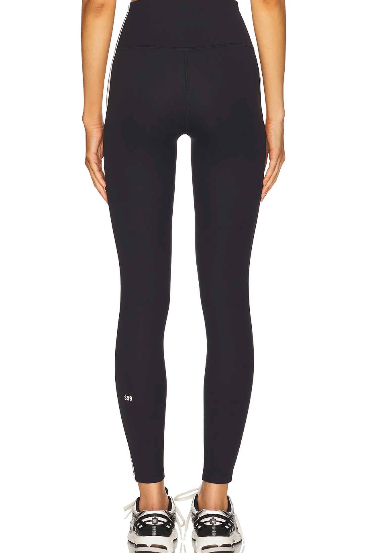 62% nylon 38% elastane.Made in China.Machine wash.Stretch waist and fit.Reflective logo behind knee.Seam pocket at back waist.Item not sold as a set