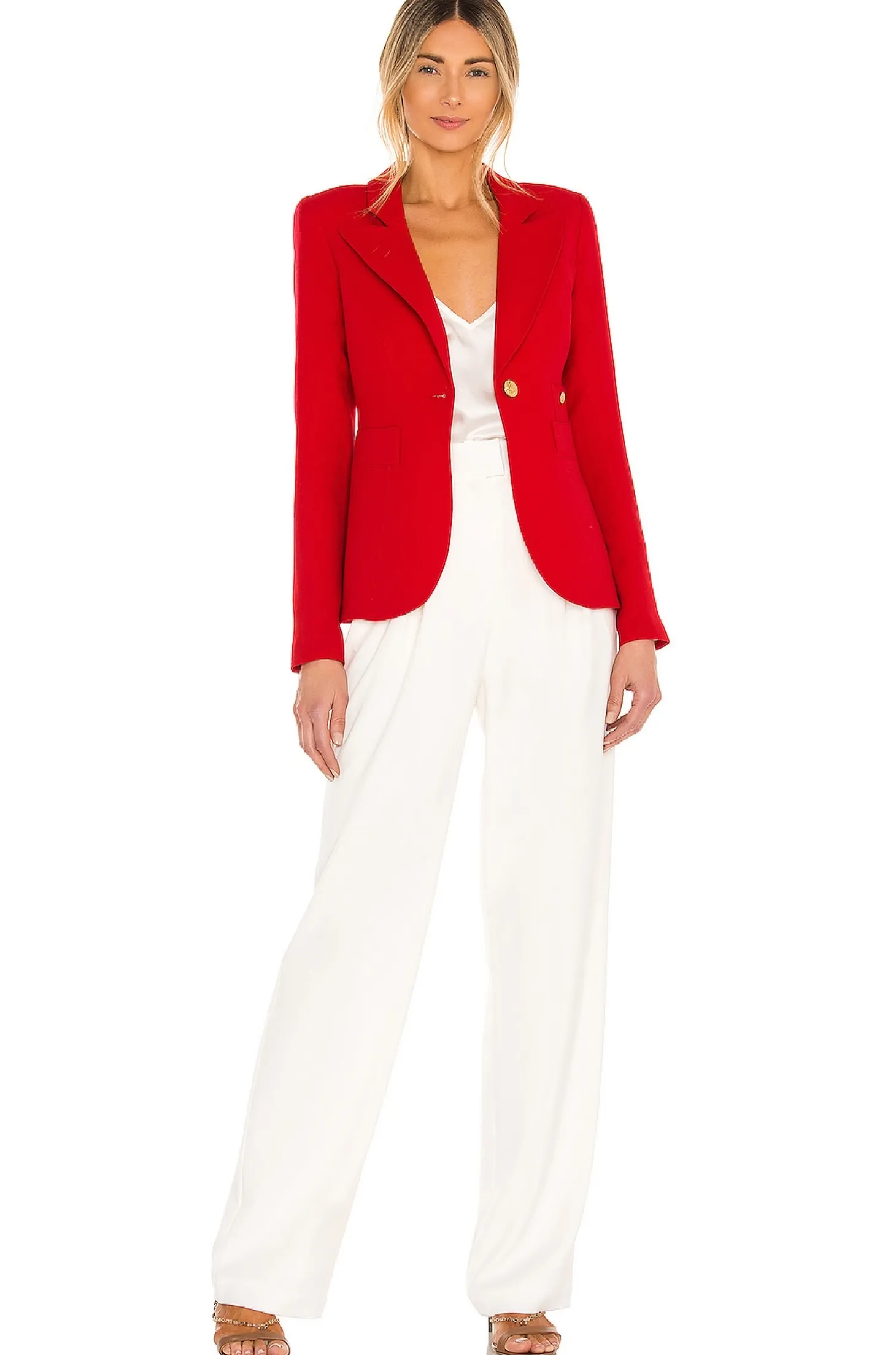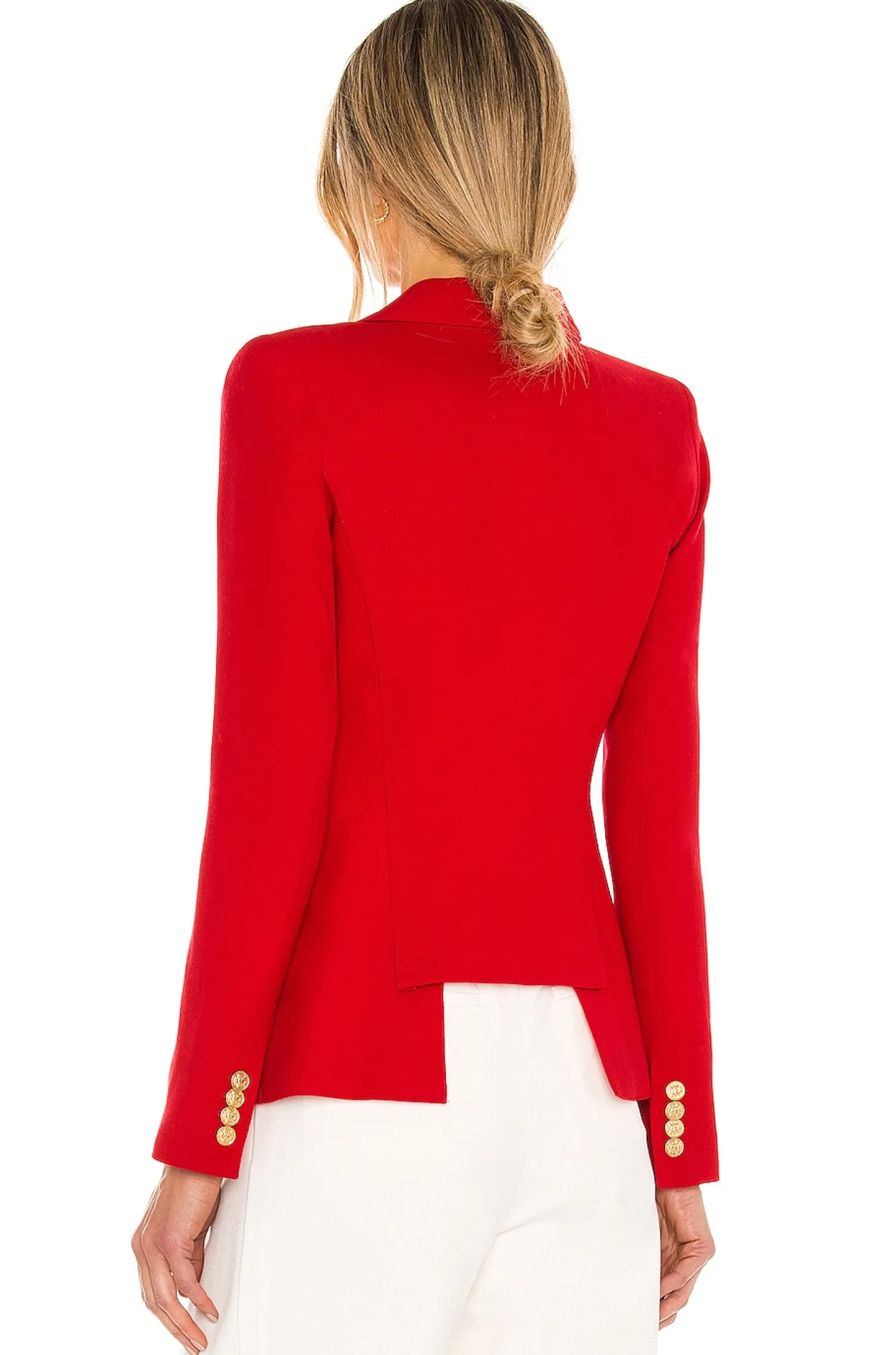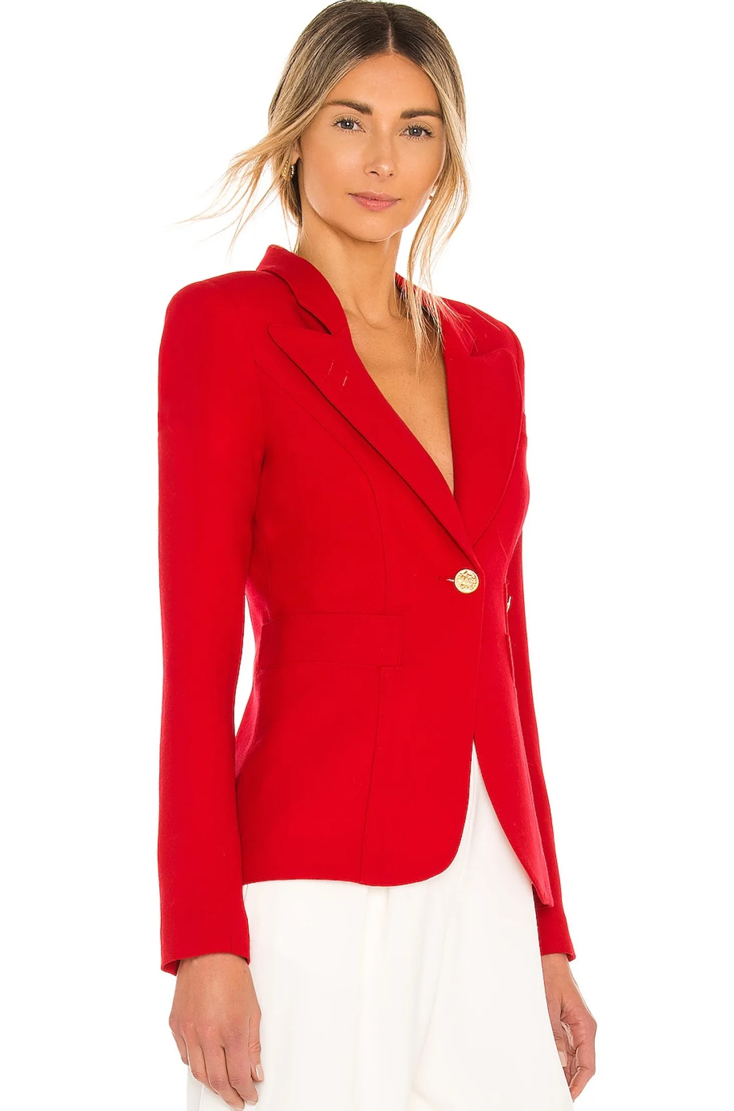 Self: 100% wool Lining: 97% poly 3% Spandex.Dry clean only.Button front closure.Front welt pockets.Buttoned sleeves.Padded shoulders.Made in Canada.Smythe's Classic Duchess Blazer is a single-breasted blazer with brass hardware. Style it back to denim for a look that is polished yet effortless.
