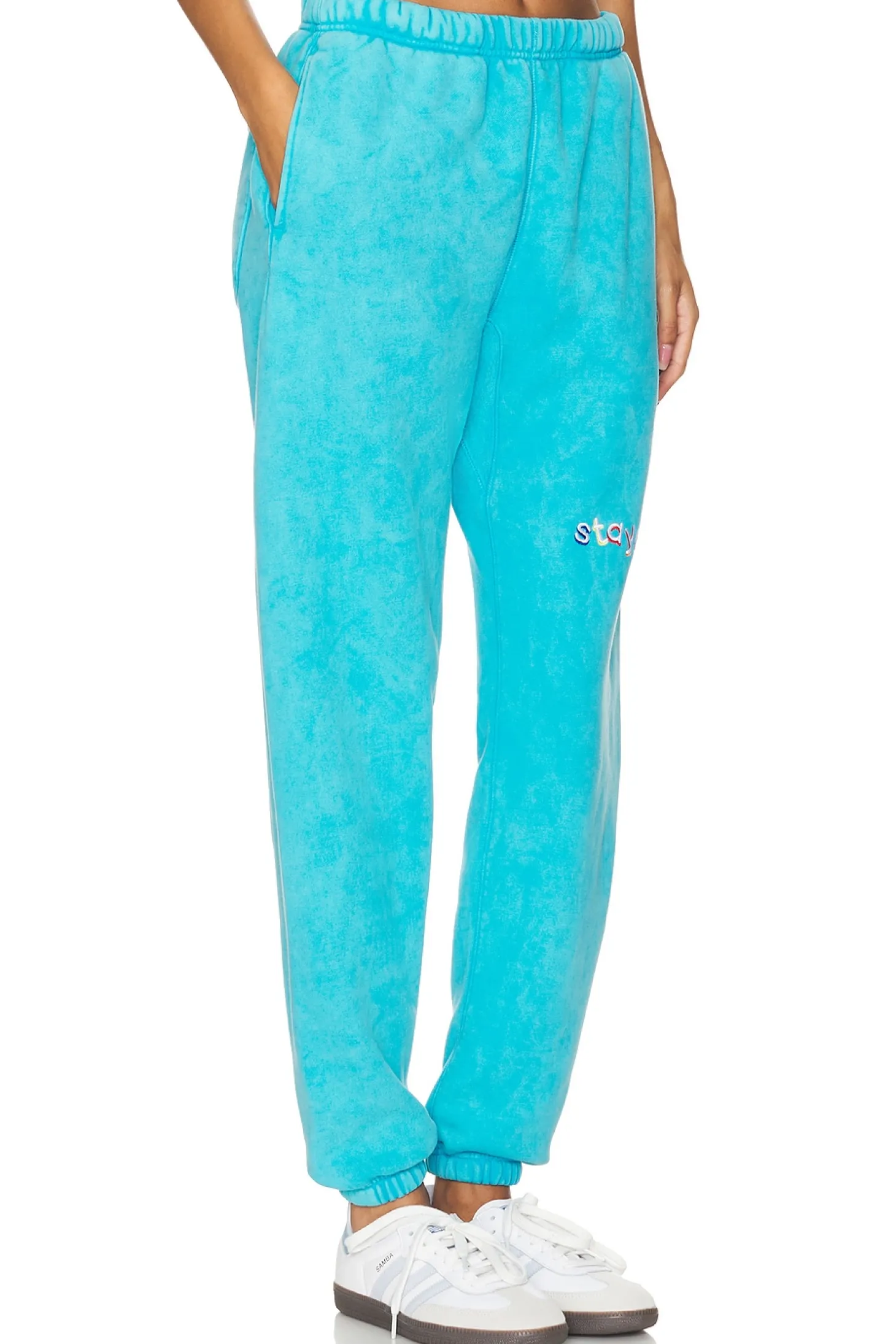 80% cotton 20% polyester.Made in China.Machine wash.Pull-on styling with elastic waistband.3-pocket design.Front logo detail.Fleece lining.21" at the knee narrows to 11" at the leg opening