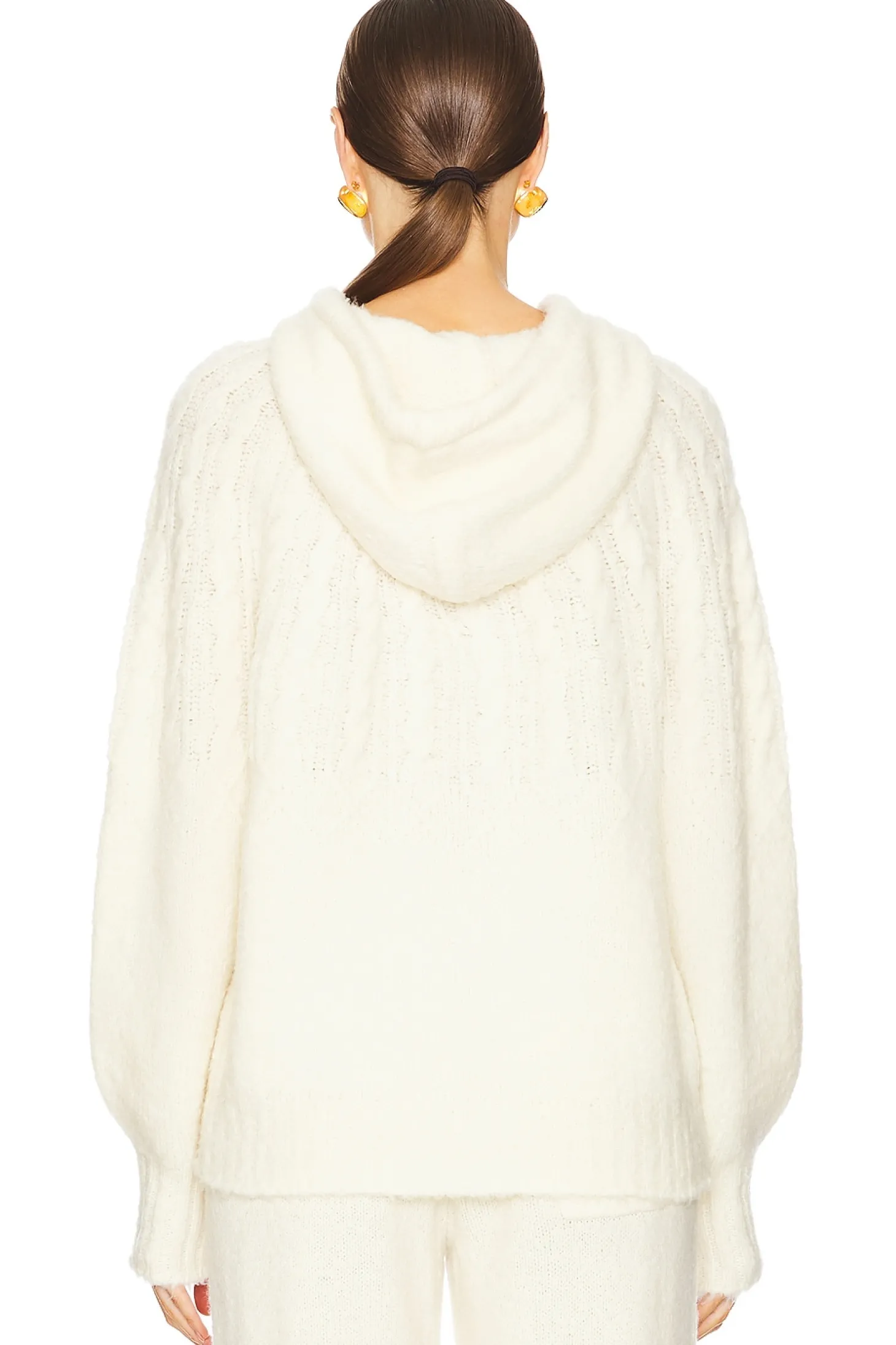 87% merino wool 13% polyamide.Made in China.Hand wash.Pull-on styling.Drawstring at hood.Midweight knit fabric.Item not sold as a set
