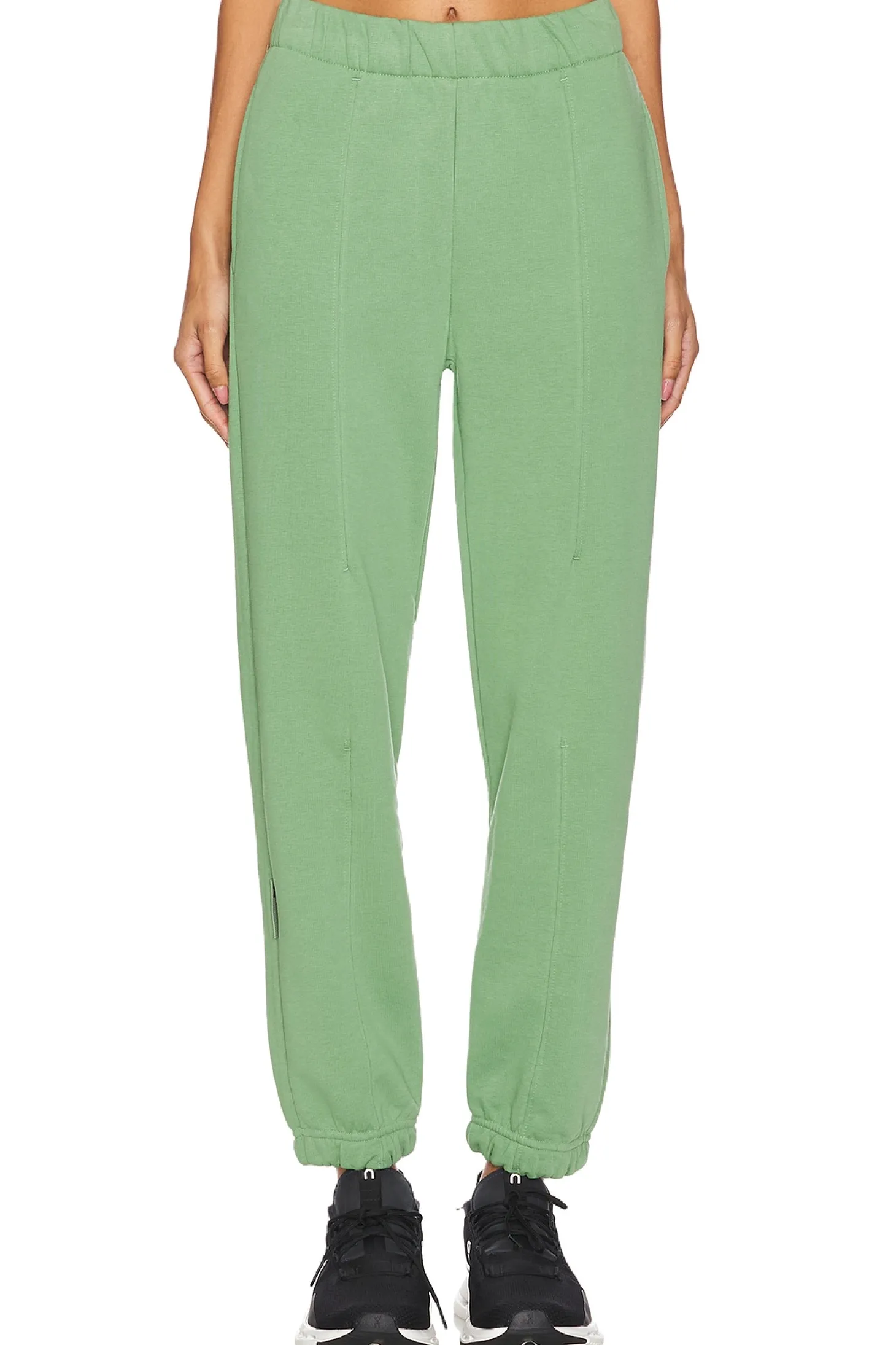 68% cotton 20% polyester 12% polyester.Made in Turkey.Machine wash.Elastic waistband with interior drawstring.Side seam pockets.Pintuck detail.Terrycloth interior.12" at the knee narrows to 9" at the leg opening