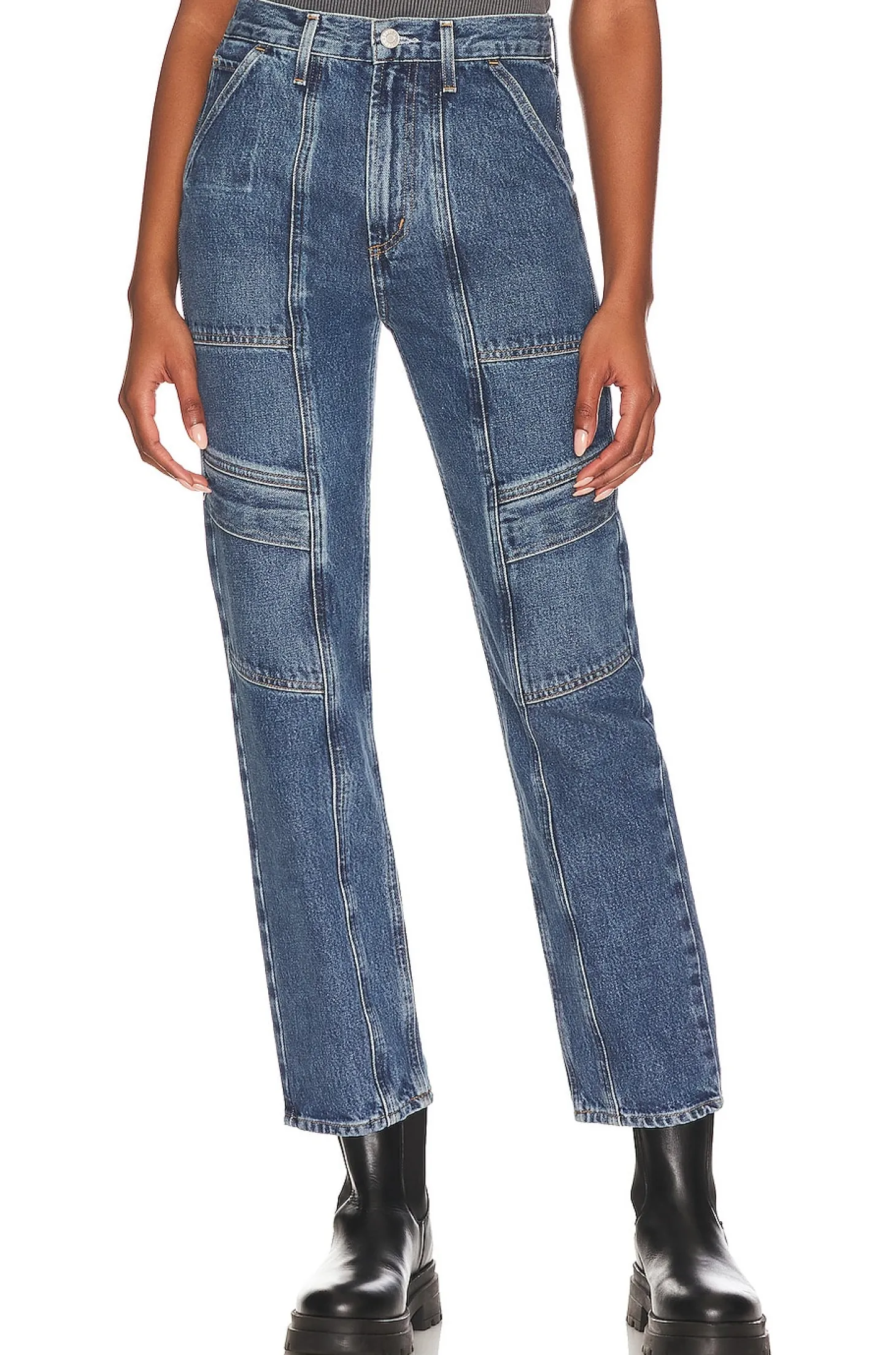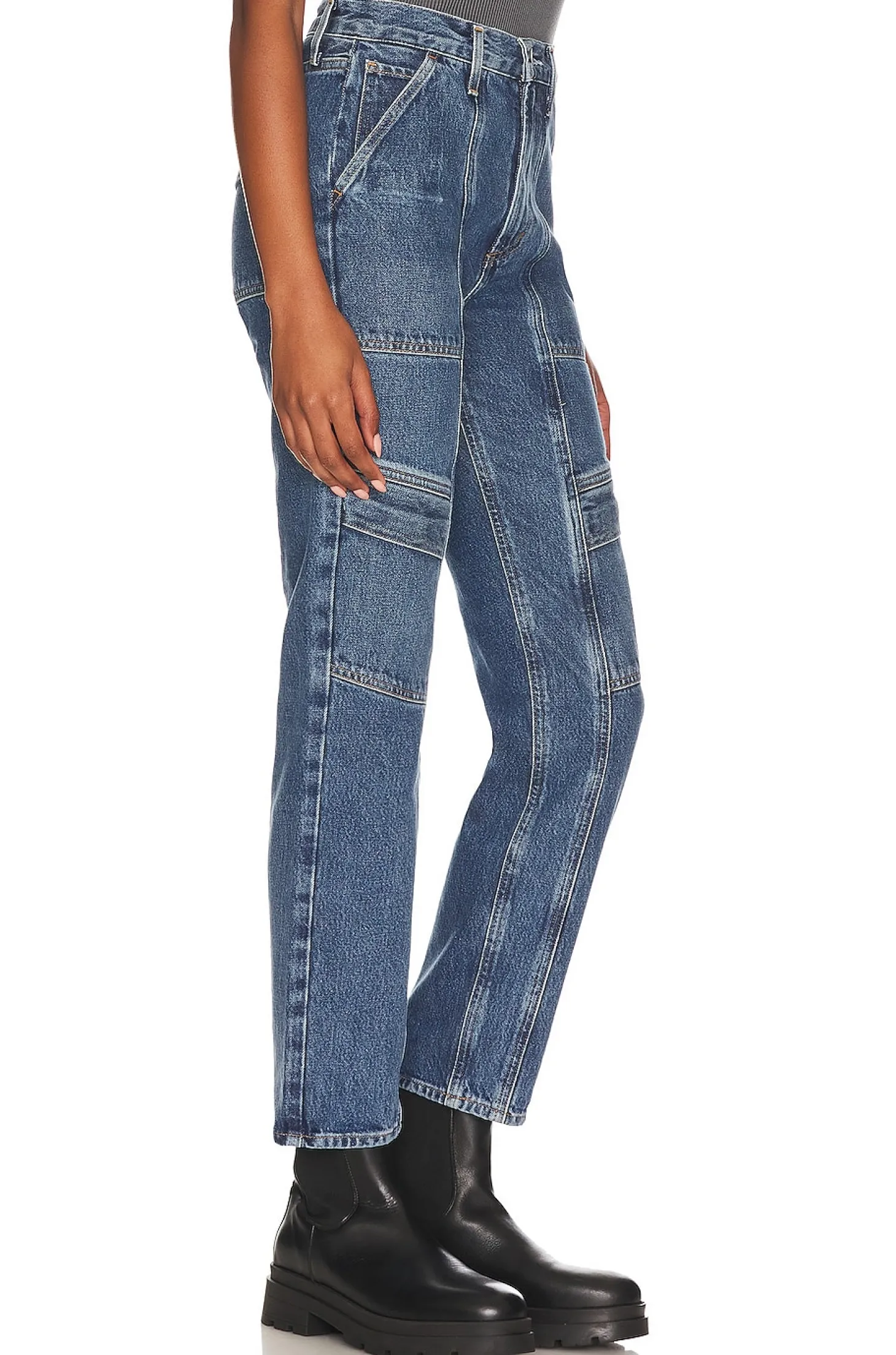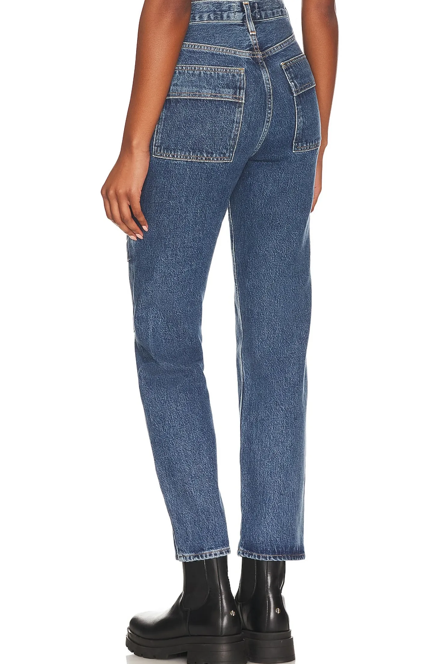 100% organic cotton.Made in Turkey.Machine wash.Zip fly with button closure.6-pocket design.Midweight denim fabric.14" at the knee narrows to 12" at the leg opening