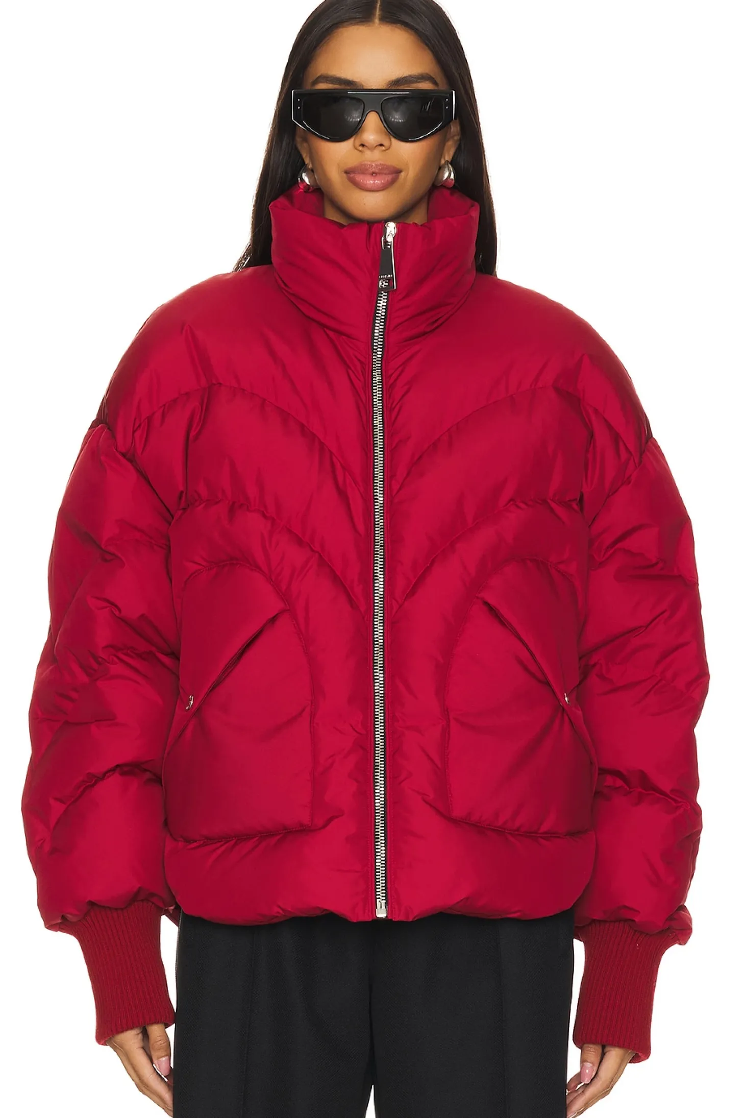 Self & Lining: 100% polyester Ribbing: 44% wool 44% wool 10% polyamide 2% elastane Padding: 80% down 20% white duck feathers.Made in Italy.Machine wash.Front zip closure.Front heart snap pockets Elasticized ribbed cuffs.Heavyweight ripstop fabric