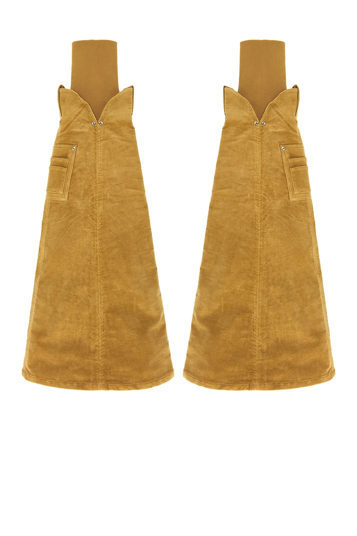 Self 1: 69% cotton 29% polyester 2% polyurethane Self 2: 95% polyester 5% spandex.Made in China.Dry clean.Corduroy fabric leg warmer with ribbed knit trim.Dual side pull-tab design.Utility pocket at side