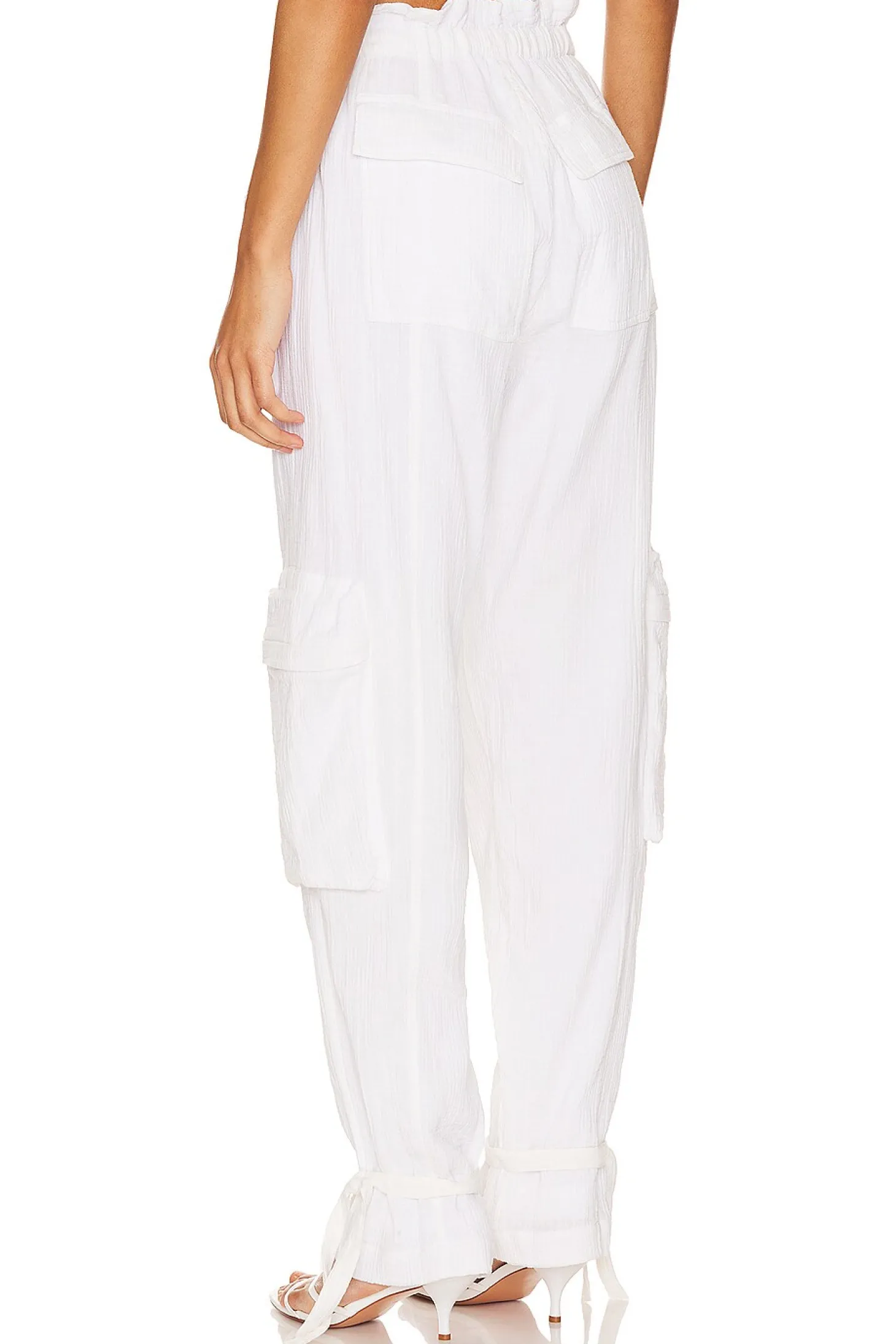 Shell: 100% cotton Lining: 100% cotton .Made in India.Machine wash cold .Elastic waist with drawstring closure.Cargo style pockets.Tie closure at hem.Linen fabric Item not sold as a set