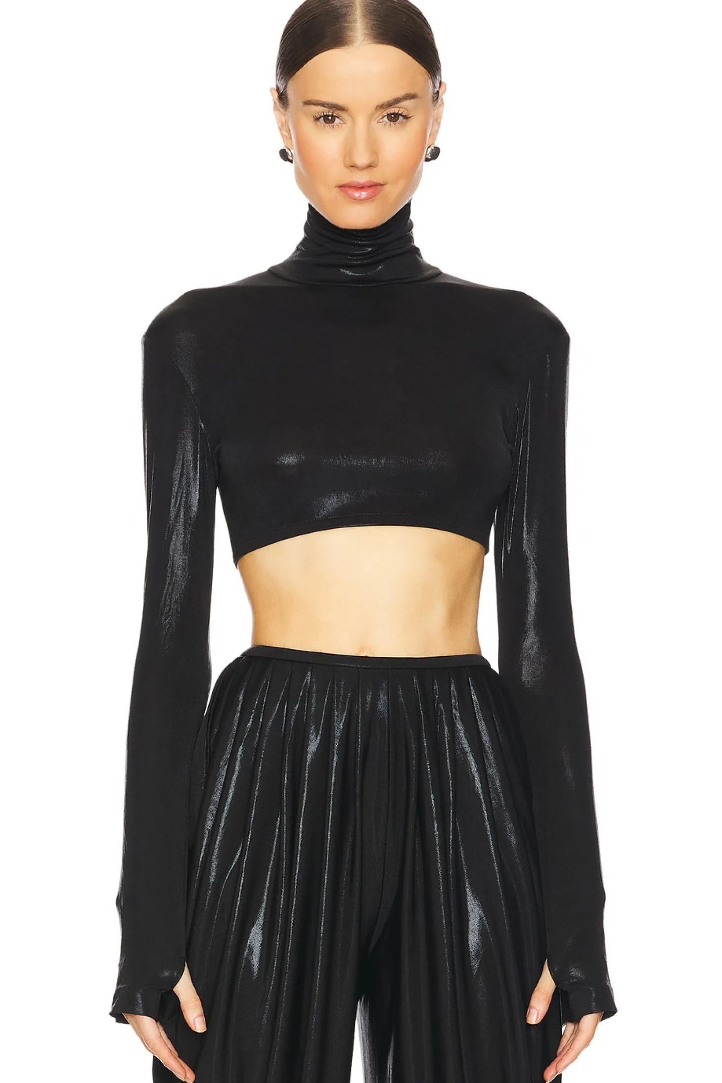 Cropped Slim Fit Long Sleeve Turtleneck Top
