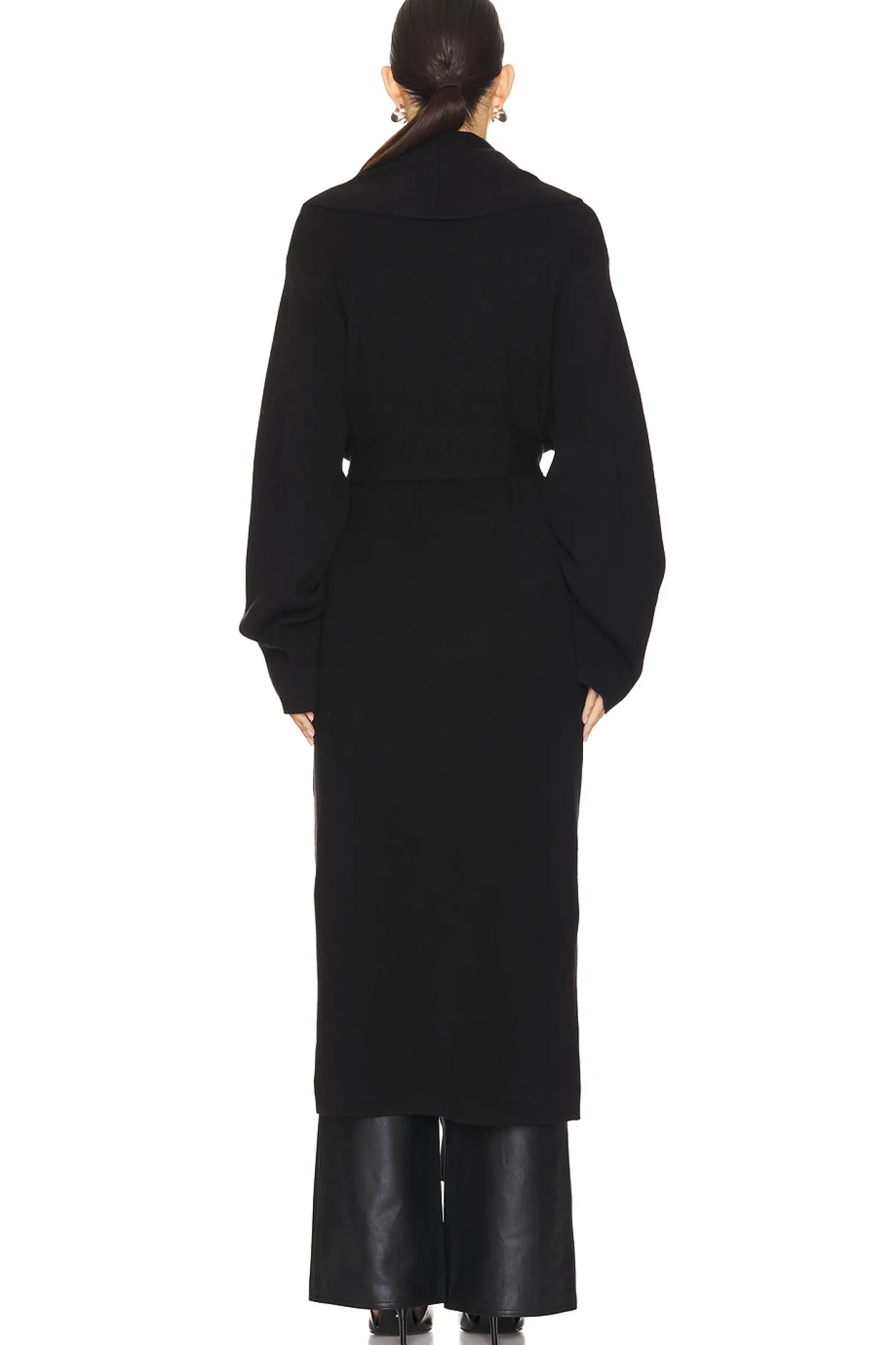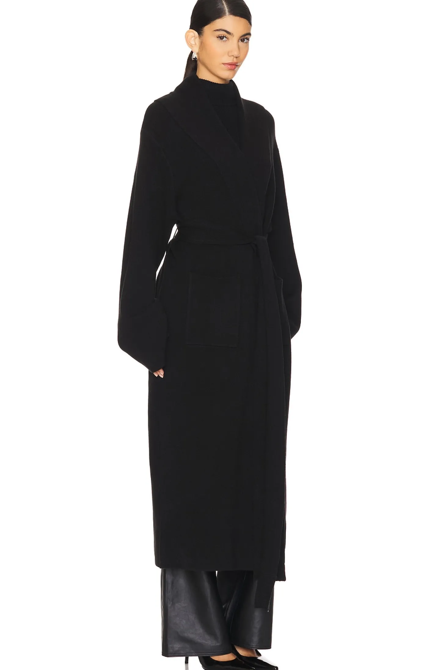 50% tencel 28% polyester 22% acrylic.Made in China.Machine wash.Open style with optional waist tie.Front slip pockets.Slinky knit fabric.Item not sold as set