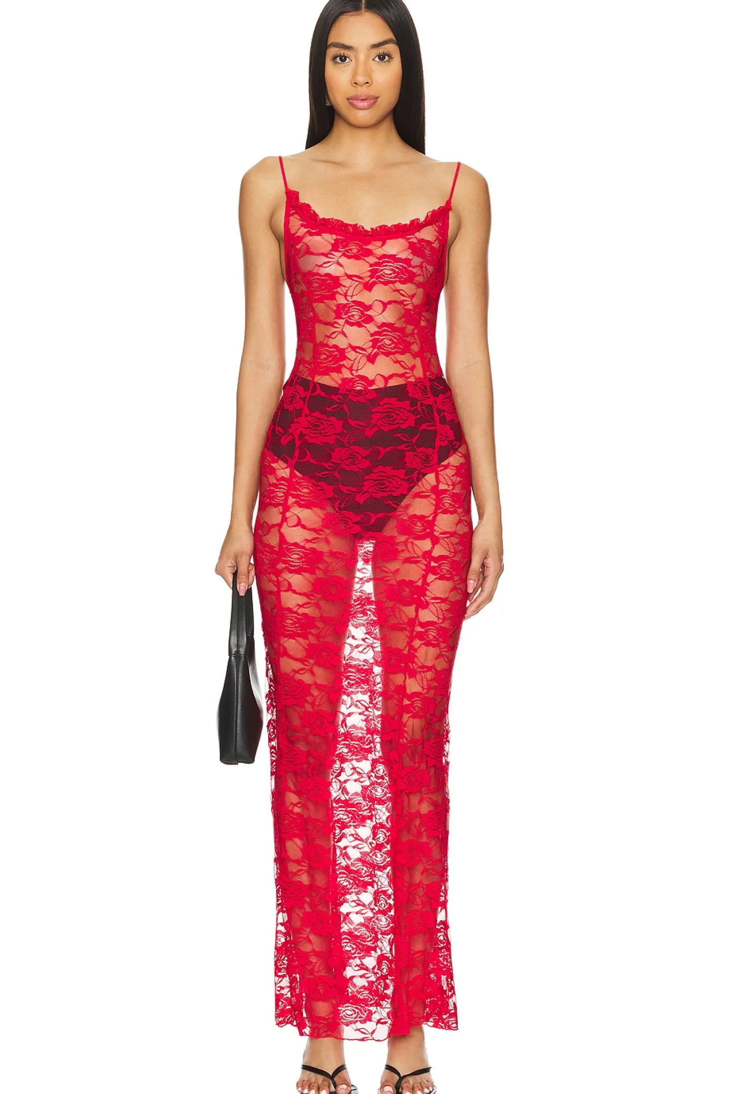 90% nylon 10% spandex.Made in Indonesia.Machine wash.Unlined.Pull-on styling.Lightweight lace fabric.Garment is intentionally sheer, undergarments will show through. Please note undergarment not included