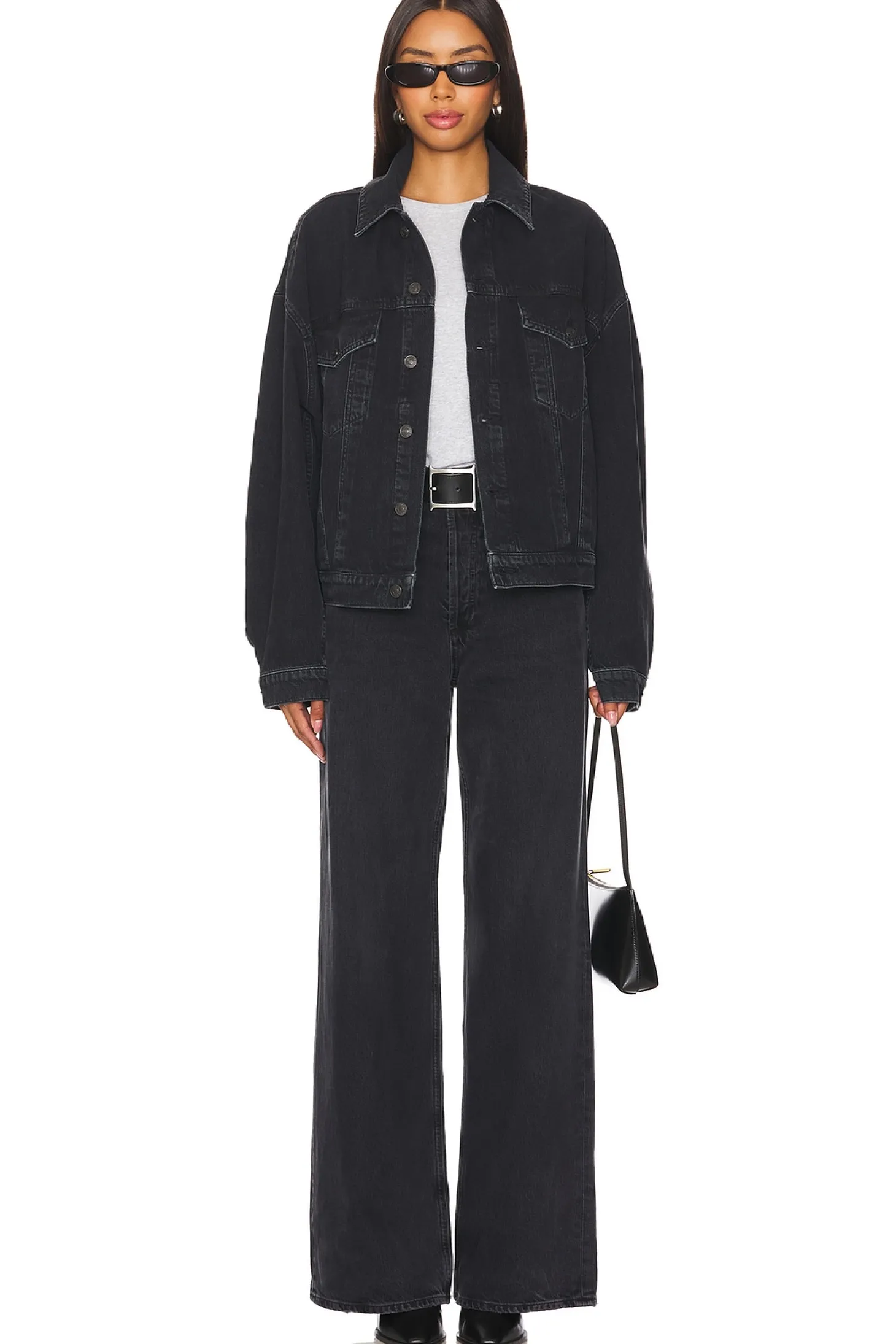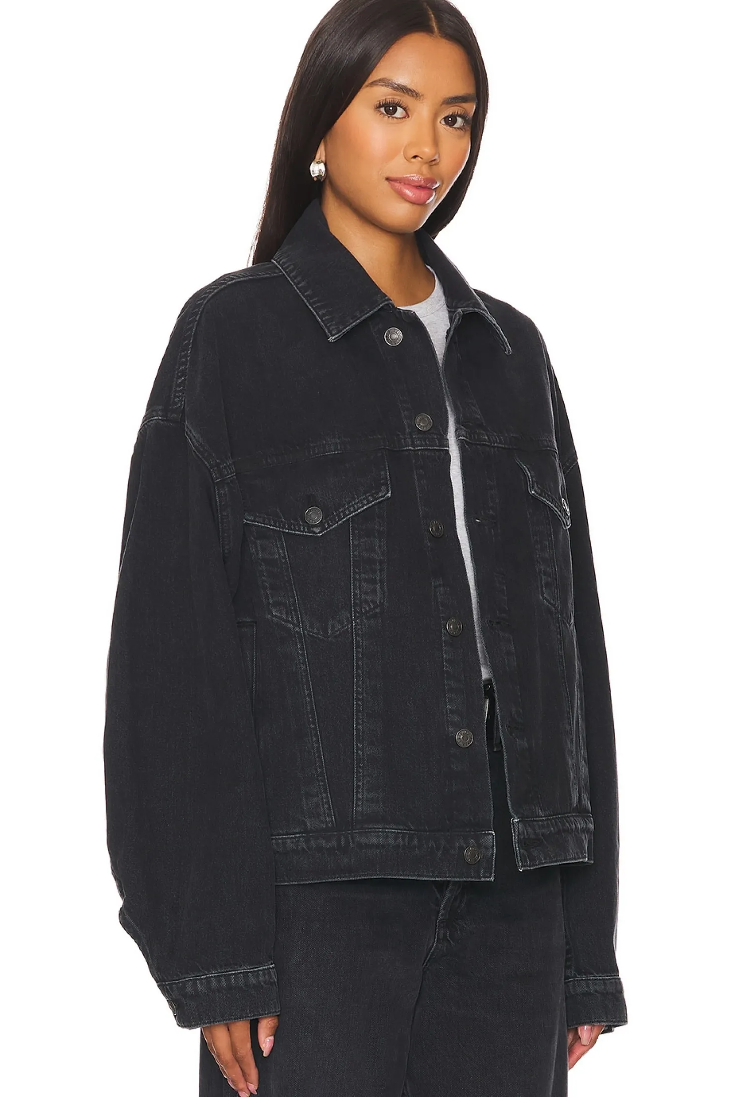 80% cotton 20% recycled cotton.Made in USA.Machine wash.Front button closure.Side and breast pockets.Buttoned cuffs.Rigid denim