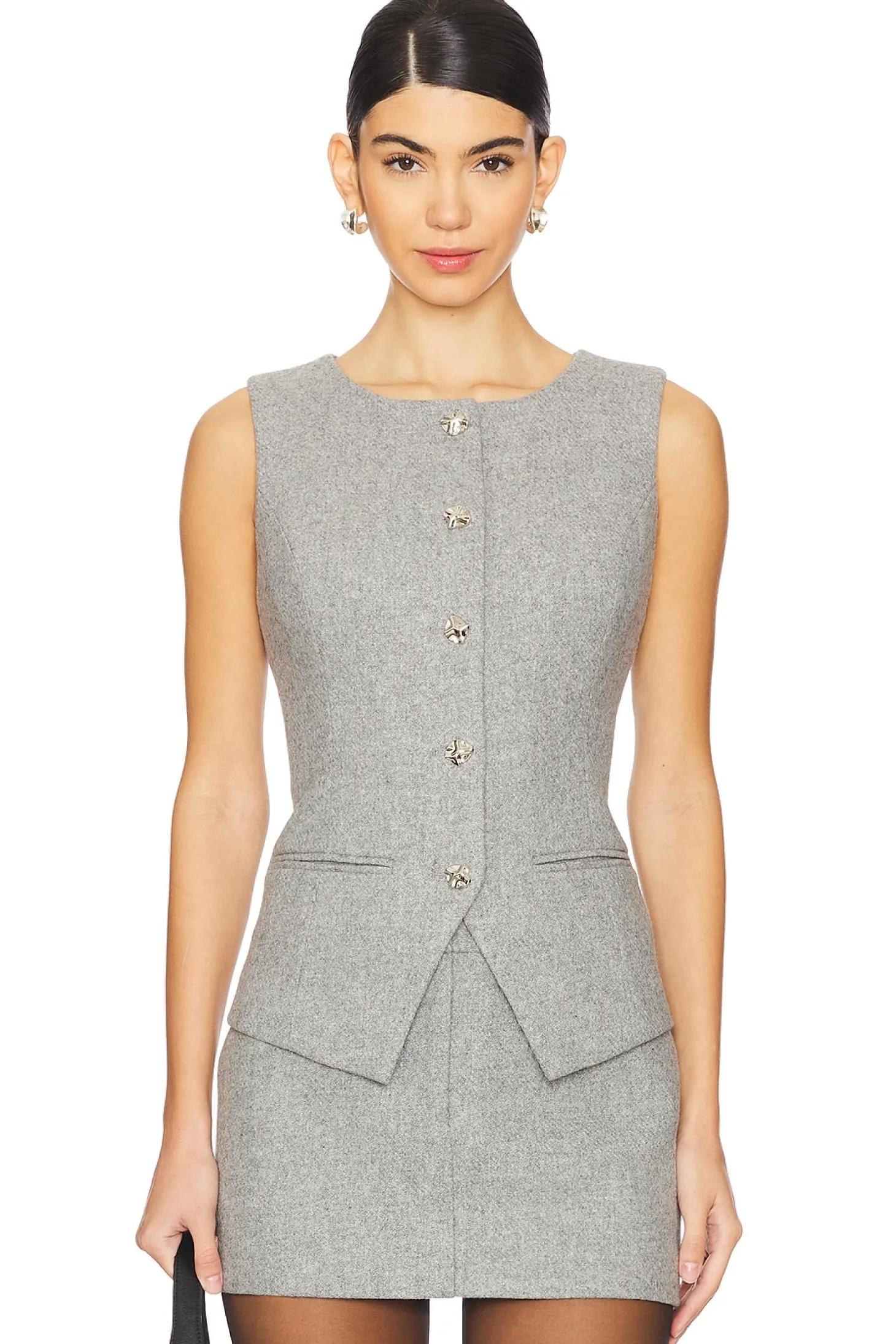 Sefl: 100% wool Lining: 100% polyester.Made in China.Dry clean recommended.Front button closure.Front welt pockets.Adjustable back strap.Item not sold as a set