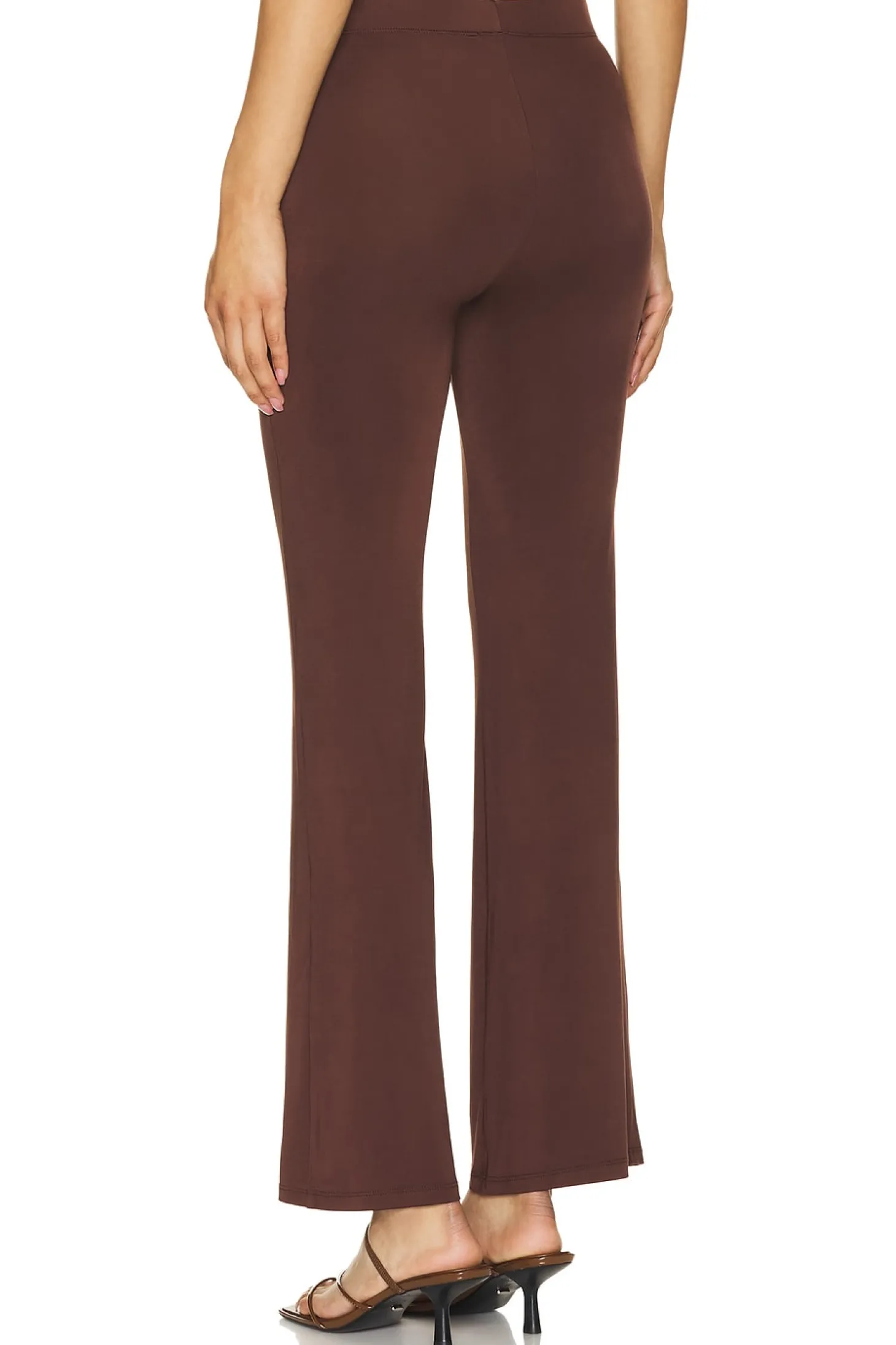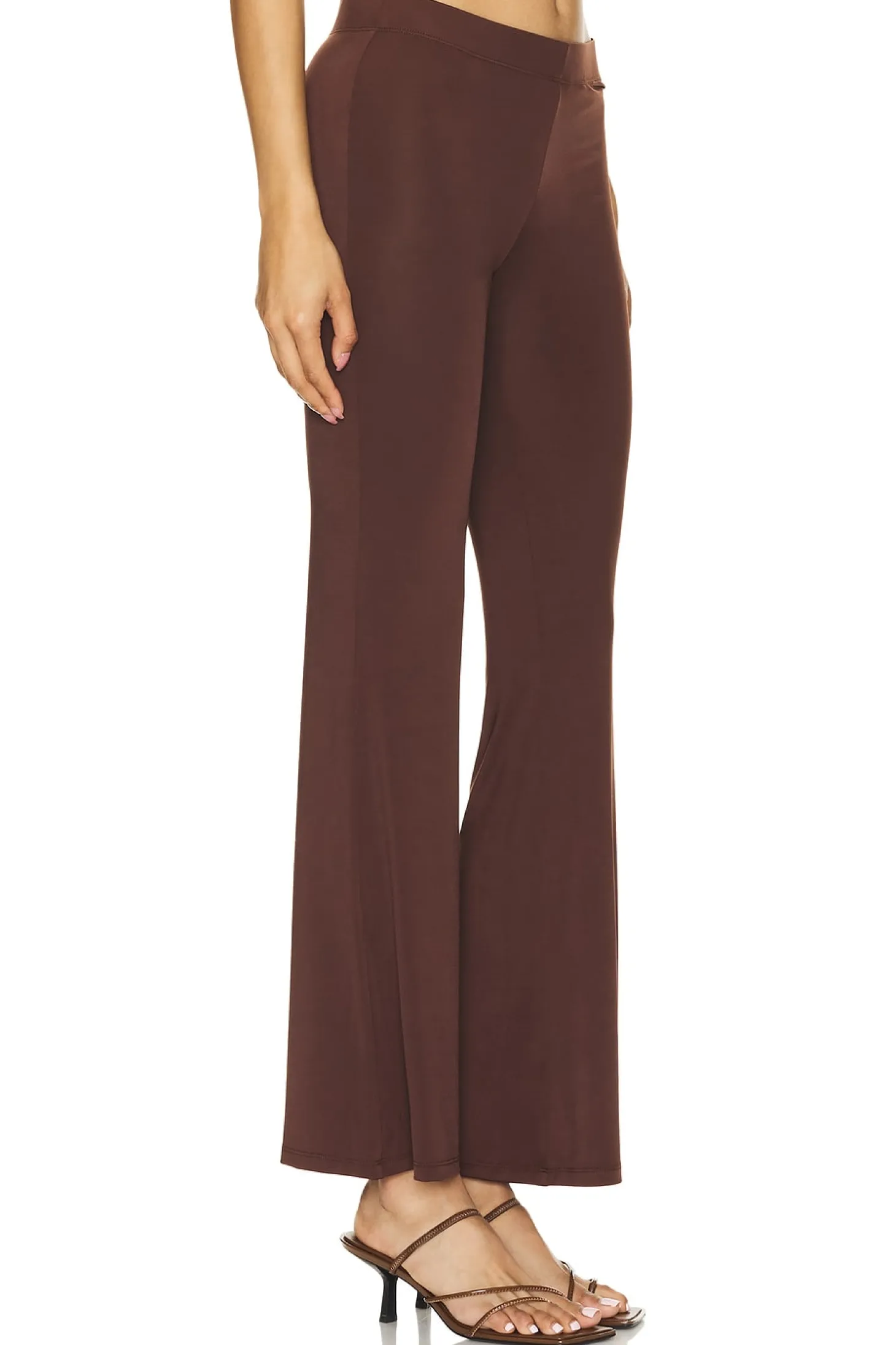 94% polyester 6% elastane.Made in Turkey.Machine wash.Pull-on styling with elastic waistband.8" at the knee breaks to 10" at the leg opening