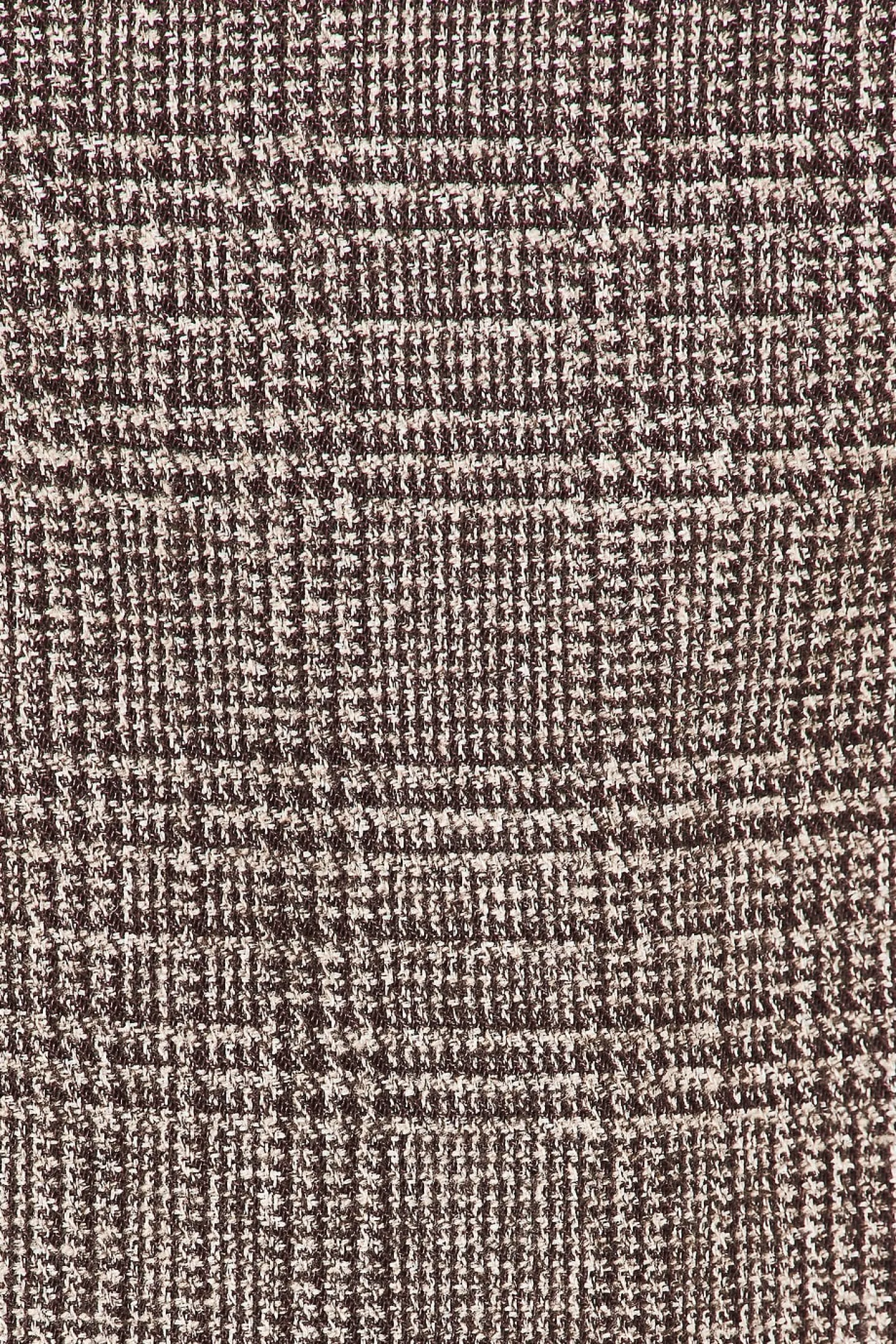 Self: 100% polyester Lining: 95% polyester 5% spandex.Made in China.Dry clean only.Front zipper closure.Side welt pockets.Buttoned cuffs.Elastic stretch at waist
