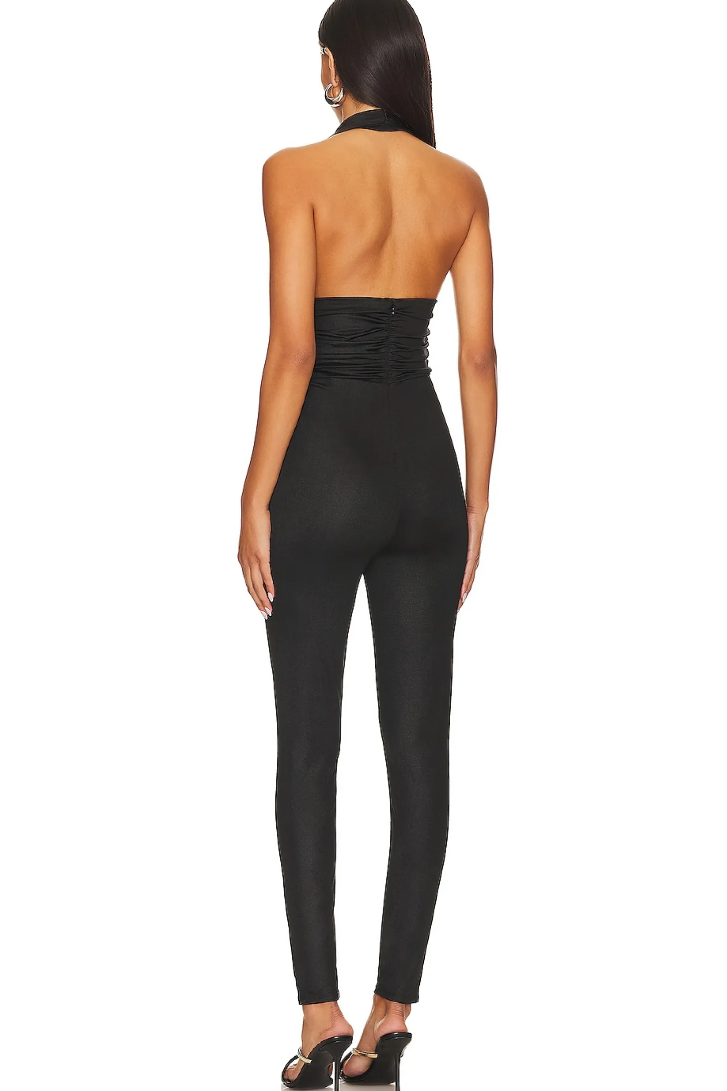 Elevate your night out look with the NBD Davina Jumpsuit in Black. Complete with a hidden back zipper closure, halterneck styling, and a sheen finish. Whether it's a night out or dinner with the girls, this jumpsuit has you covered in style..92% polyester 8% spandex.Made in Philippines.Hand wash.Hidden back zipper closure.Halterneck styling.Sheen finish