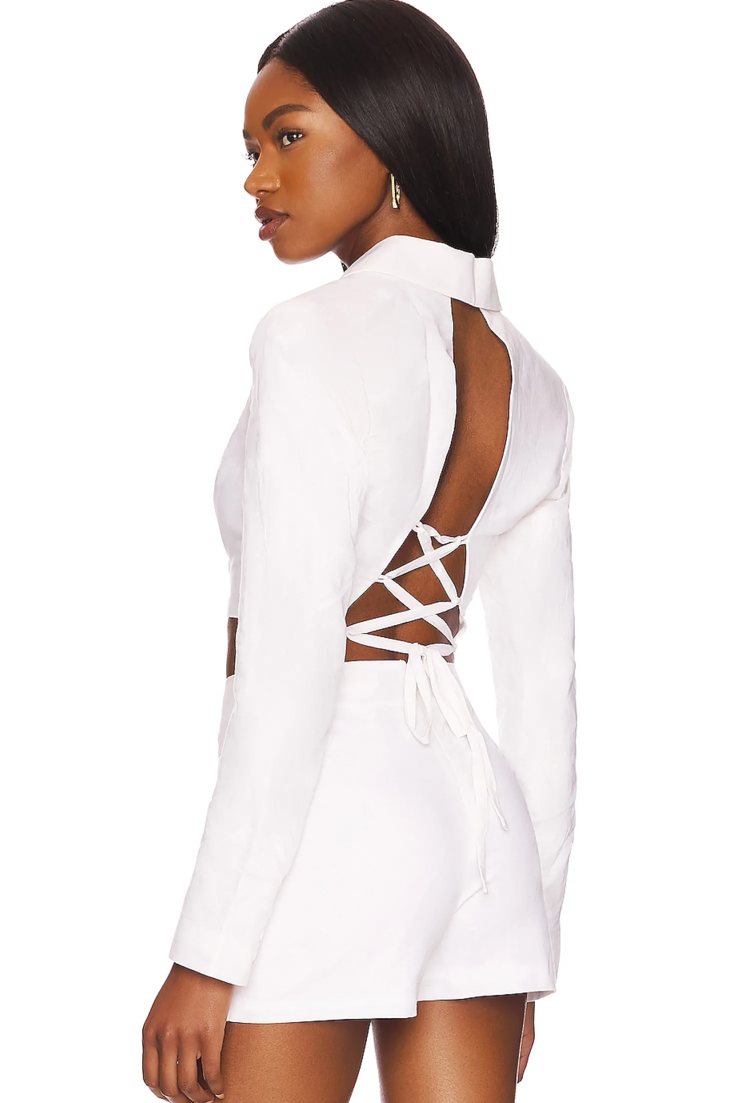 Self: 55% cotton 45% linen Lining: 100% rayon.Made in China.Hand wash.Front button closure.Padded shoulders.Buttoned cuffs.Back corset style tie.Item not sold as a set