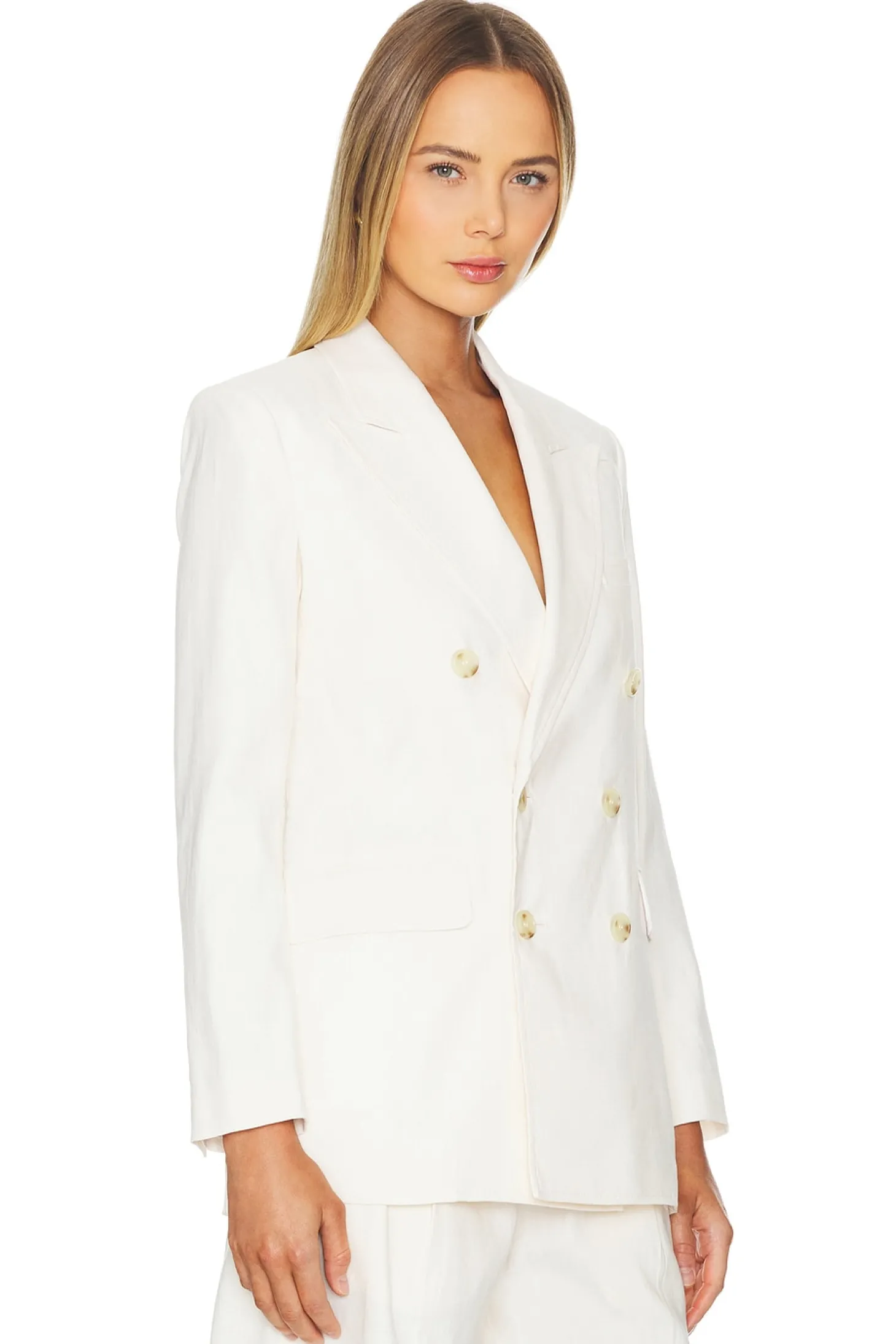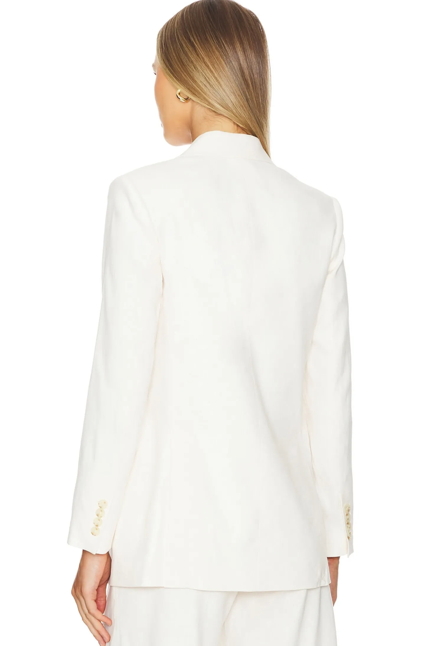 Self: 65% linen 34% cotton 1% elastane Body lining: 51% polyester 49% cotton Sleeve lining: 100% polyester.Made in Vietnam.Dry clean.Front button closure