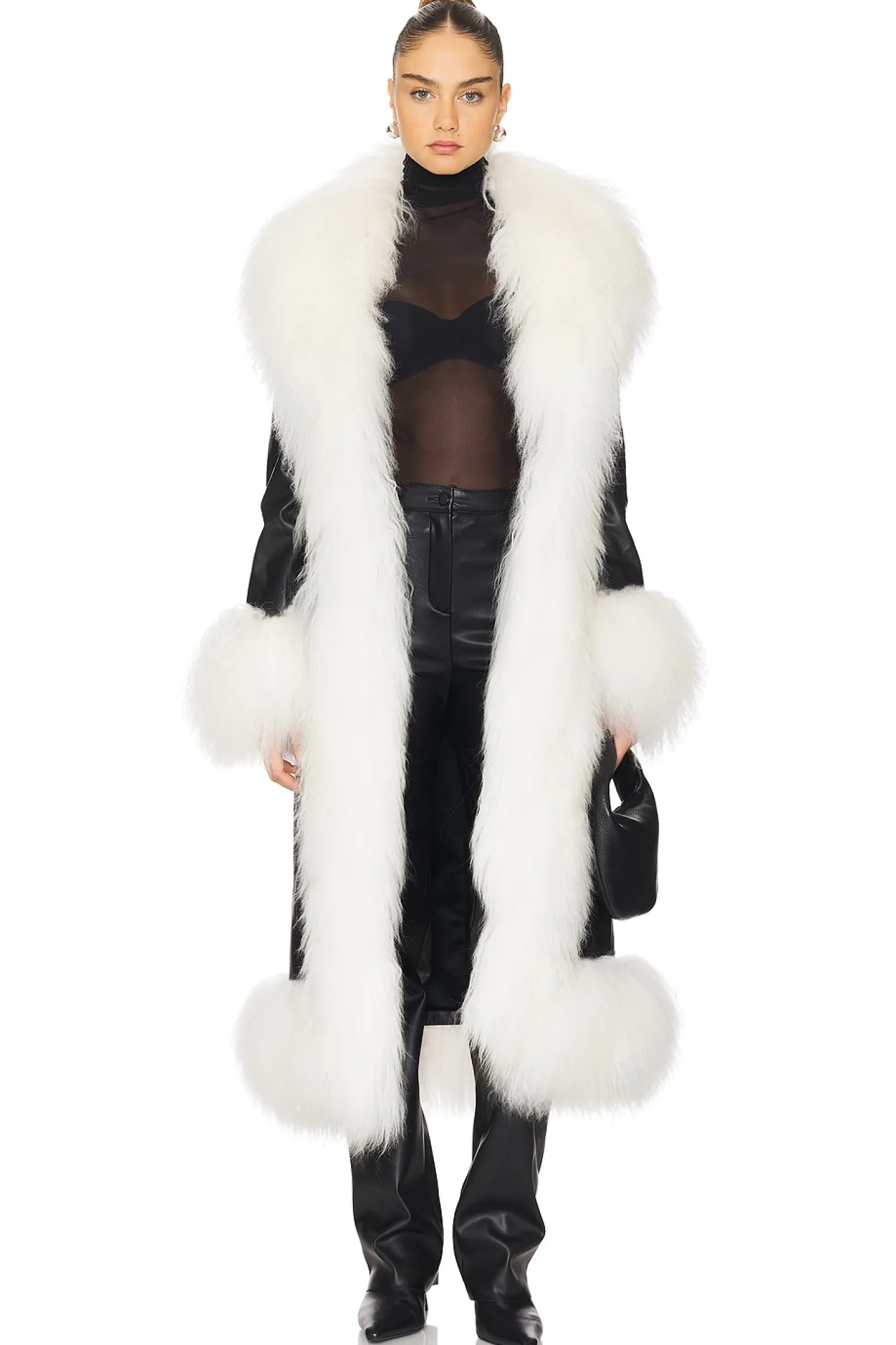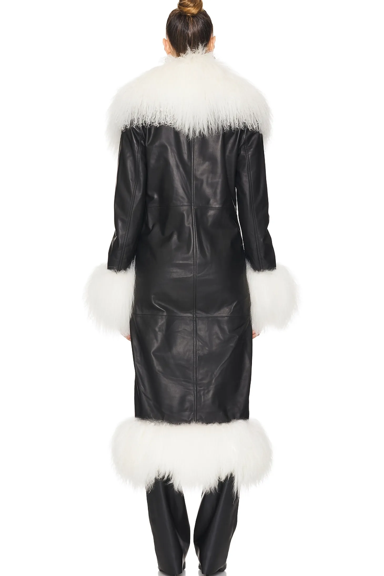 Dorothy Leather Maxi Coat With Fur Trim