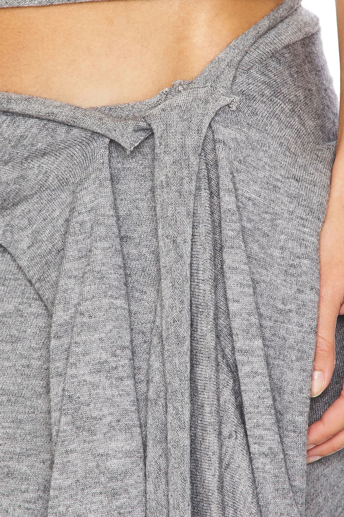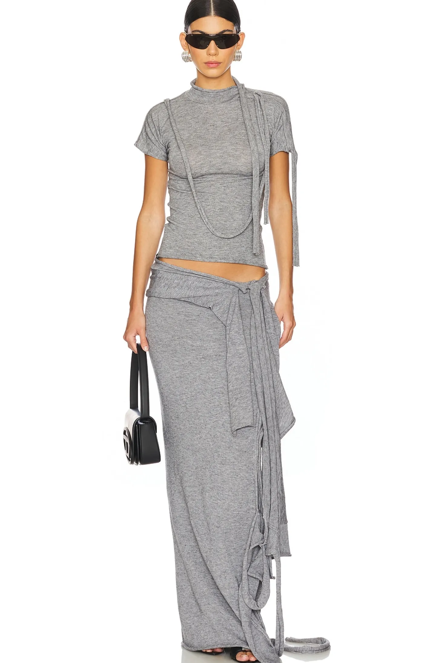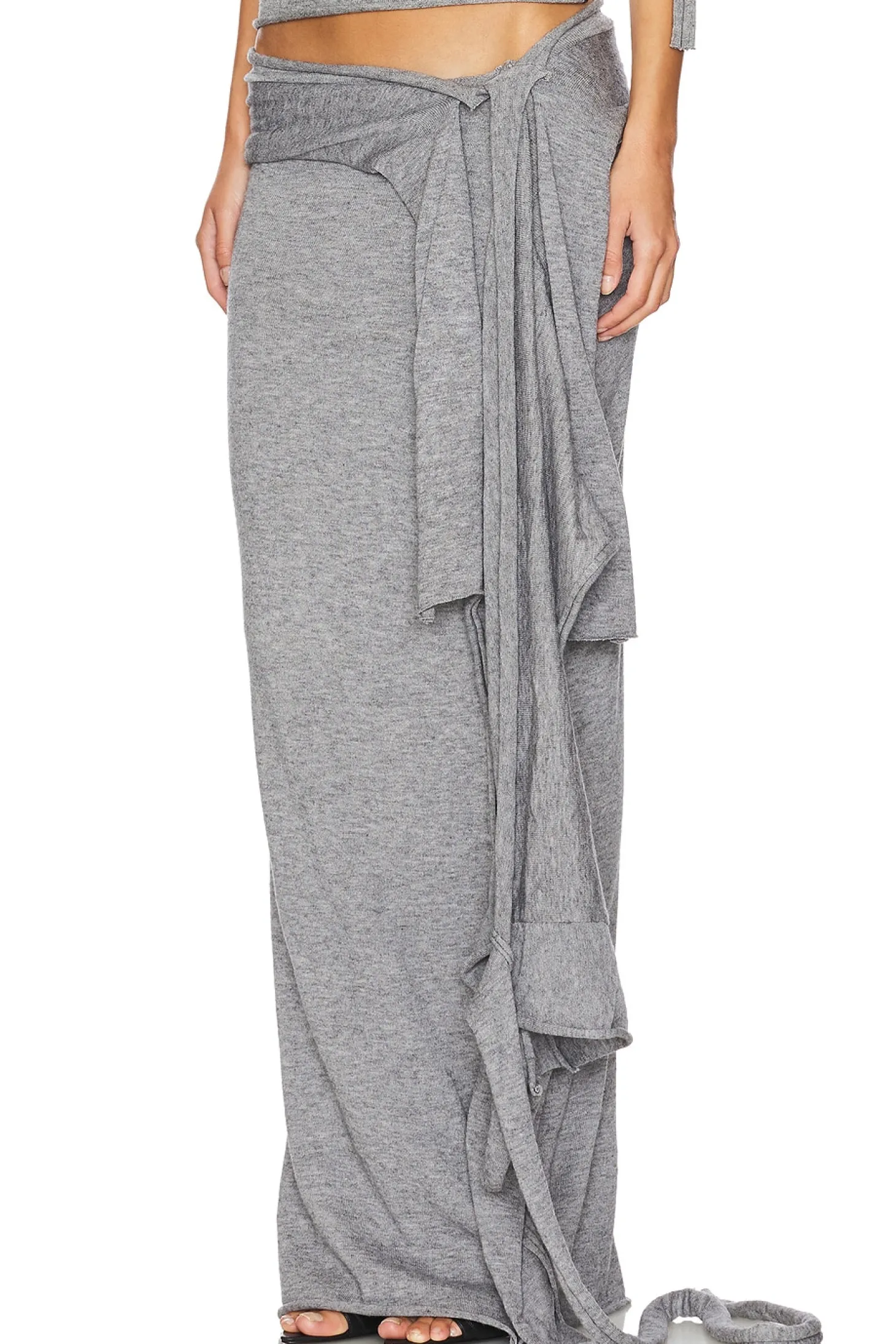 50% viscose 28% polyester 22% polyamide.Made in Greece.Hand wash.Unlined.Pull-on styling.Self-tie draping accents throughout.Slinky jersey fabric with side slit and partial wrap Item not sold as set.Skirt measures approx 46" in length