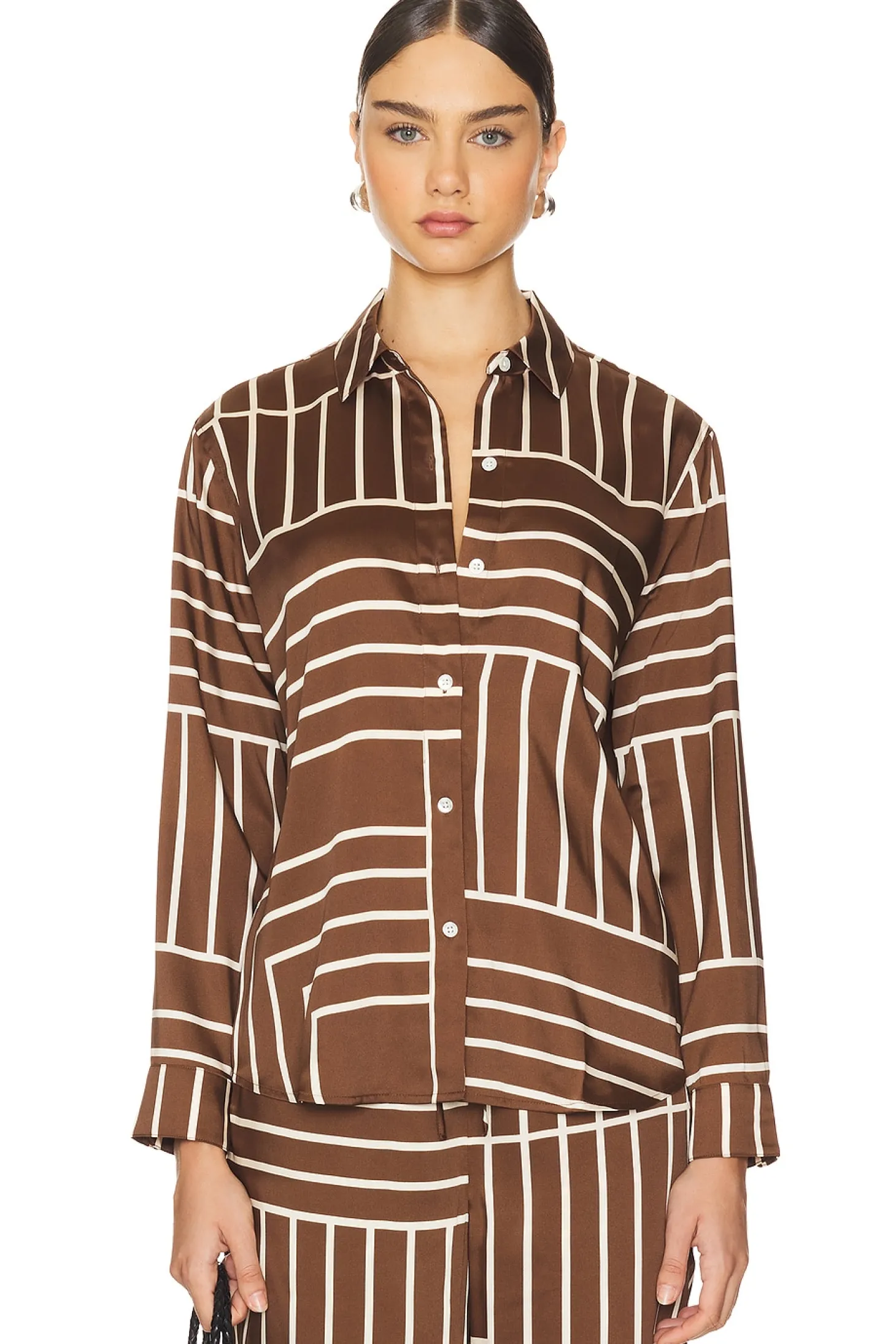 100% polyester.Made in China.Dry clean only.Front button closure.Buttoned cuffs.Crepe fabric.Item not sold as a set