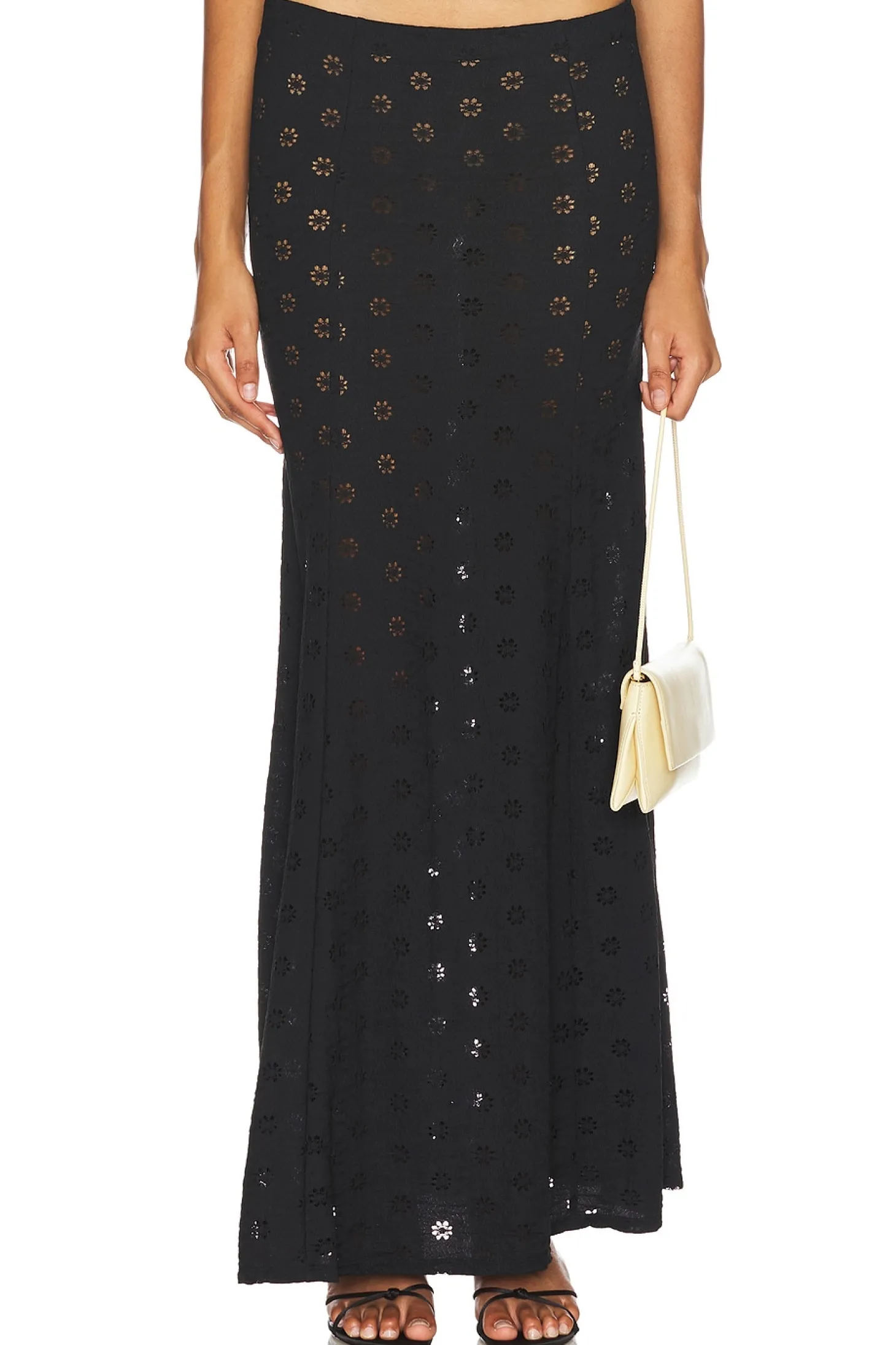 98% nylon 2% elastane.Made in China.Hand wash.Unlined.Pull-on styling with elastic waistband.Garment is made with a semi-sheer fabric, undergarments can show through.Item not sold as a set.Skirt measures approx 43" in length