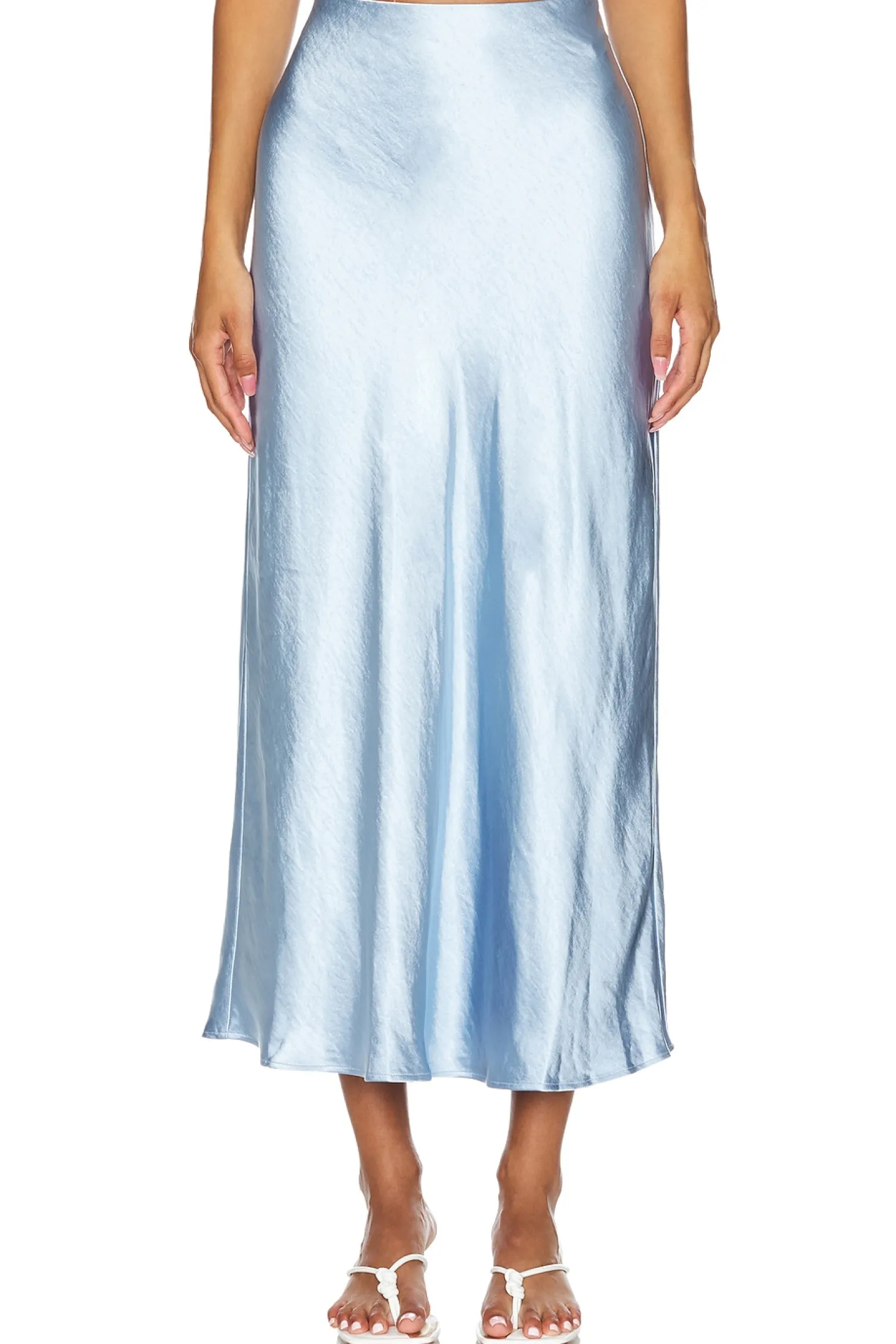 Self: 100% polyester Lining: 100% polyester.Made in China.Machine wash.Fully lined.Pull-on styling with elastic waistband.Satin fabric.Skirt measures approx 37" in length