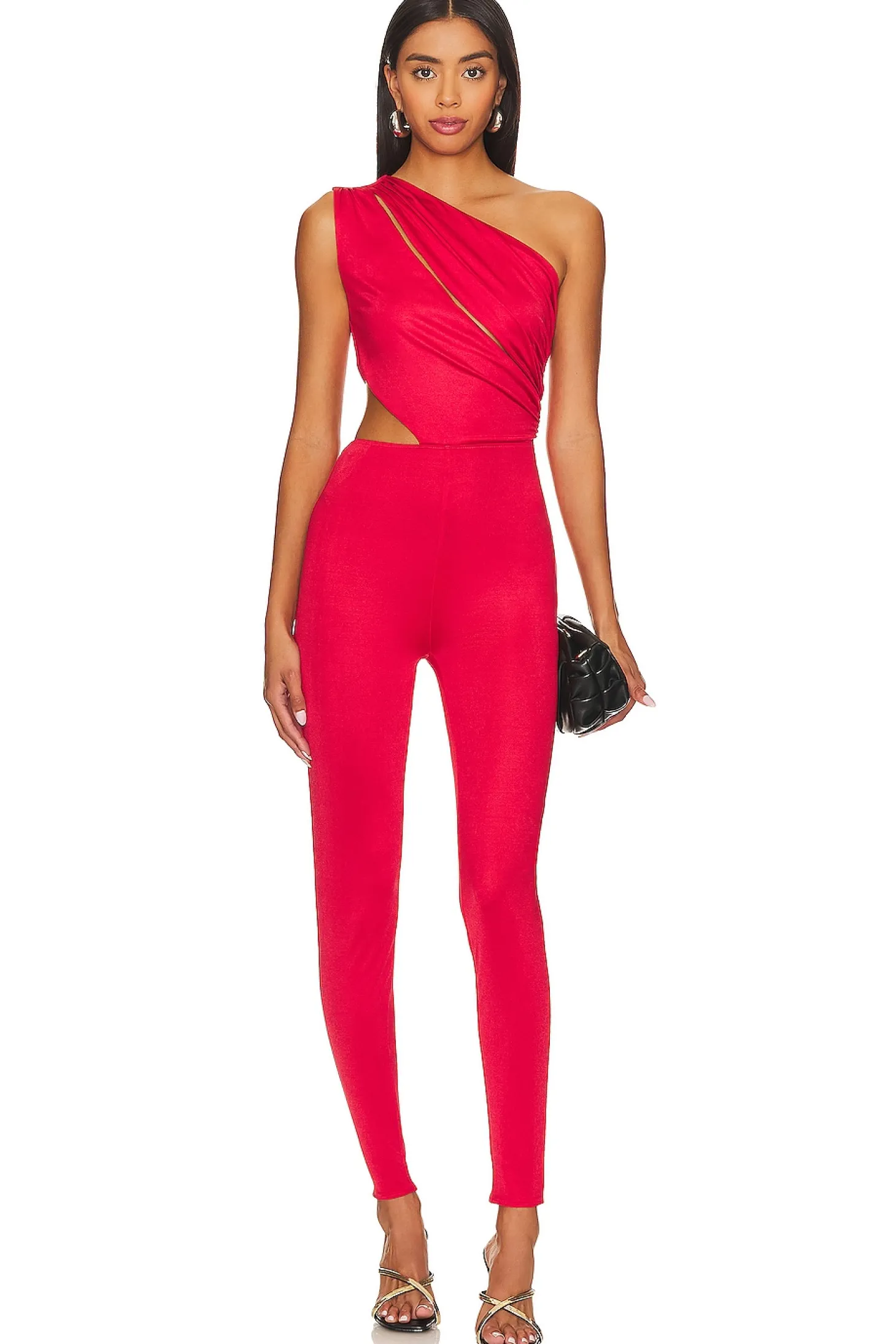 Make a statement with the NBD Emelia Jumpsuit in Red. Featuring a hidden side zipper closure, one-shoulder styling, sultry cut-outs, and a captivating sheen finish. This jumpsuit is your go-to for a show-stopping look. Pair with the perfect heels and clutch for a night out..92% polyester 8% spandex.Made in Philippines.Hand wash.Hidden side zipper closure.One shoulder styling.Cut-out styling Sheen finish