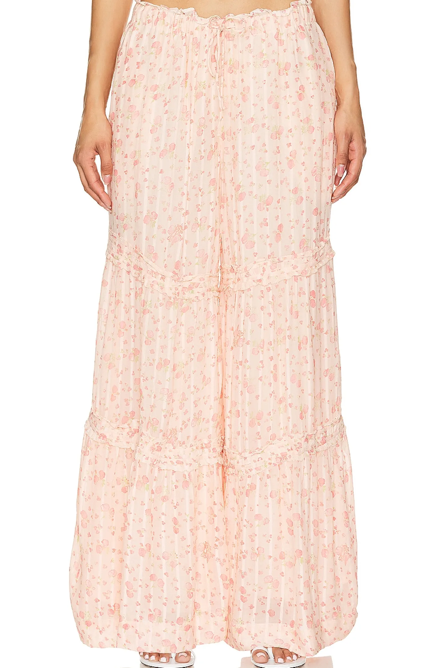 Emmaline Tiered Pull On Pant In Peach Combo