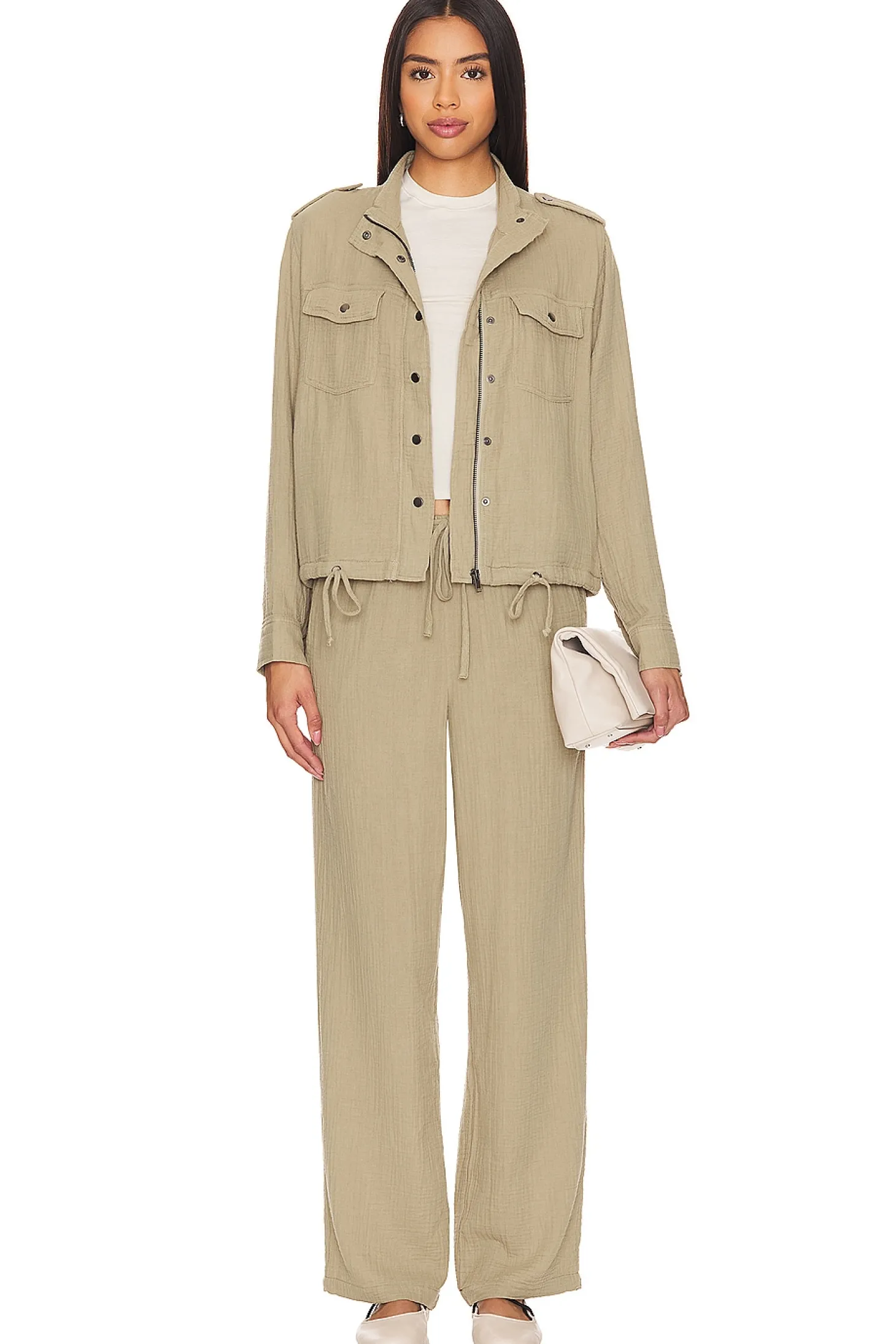 Self: 100% organic cotton Pocket Lining: 100% cotton.Made in China.Hand wash.Drawstring closure.Side slant pockets.Lightweight gauze fabric.Item not sold as a set.18" at the knee and 18" at the leg opening