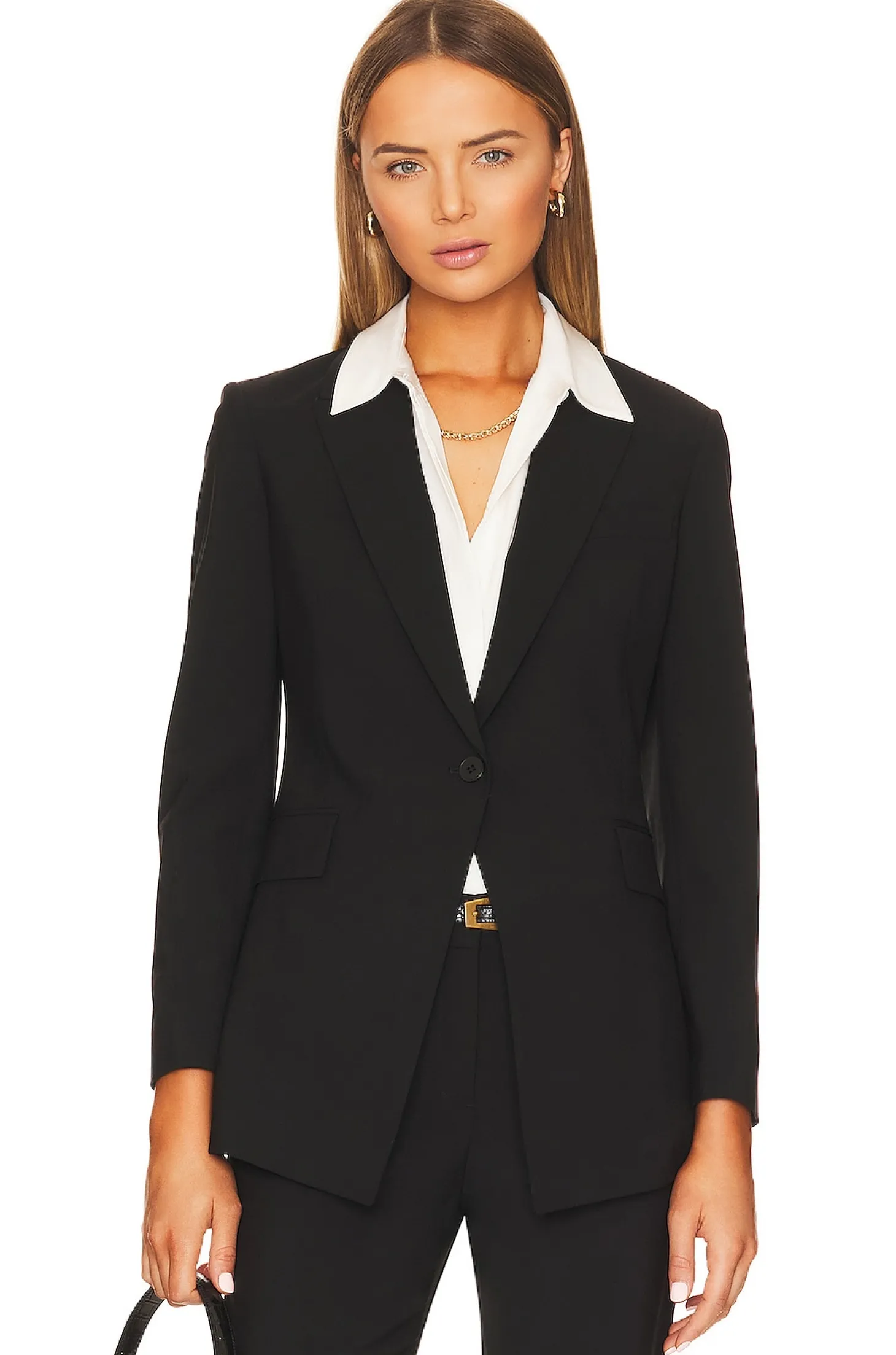 Self: 96% wool 4% elastane Lining: 100% cupro.Made in China.Dry clean only.Single front button closure.Faux pockets at front.Buttoned cuffs.Traceable wool fabric with back vent.Item not sold as a set
