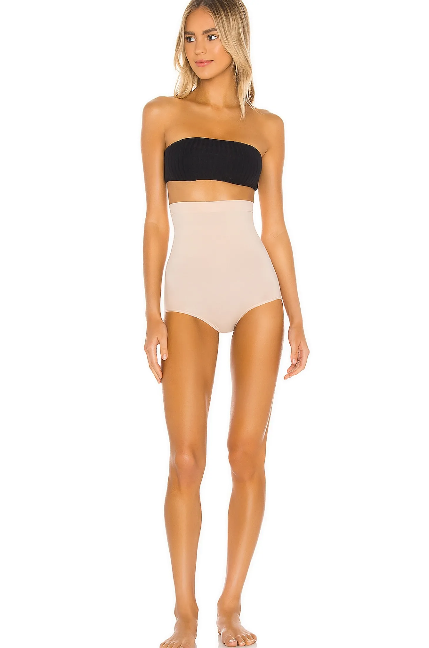 51% nylon 49% elastane.Elasticized waist.Slims tummy and contours waist.Soft hosiery stays put under your bra.Shaping zones target problem areas.Smoothes from bra line to hip.Imported