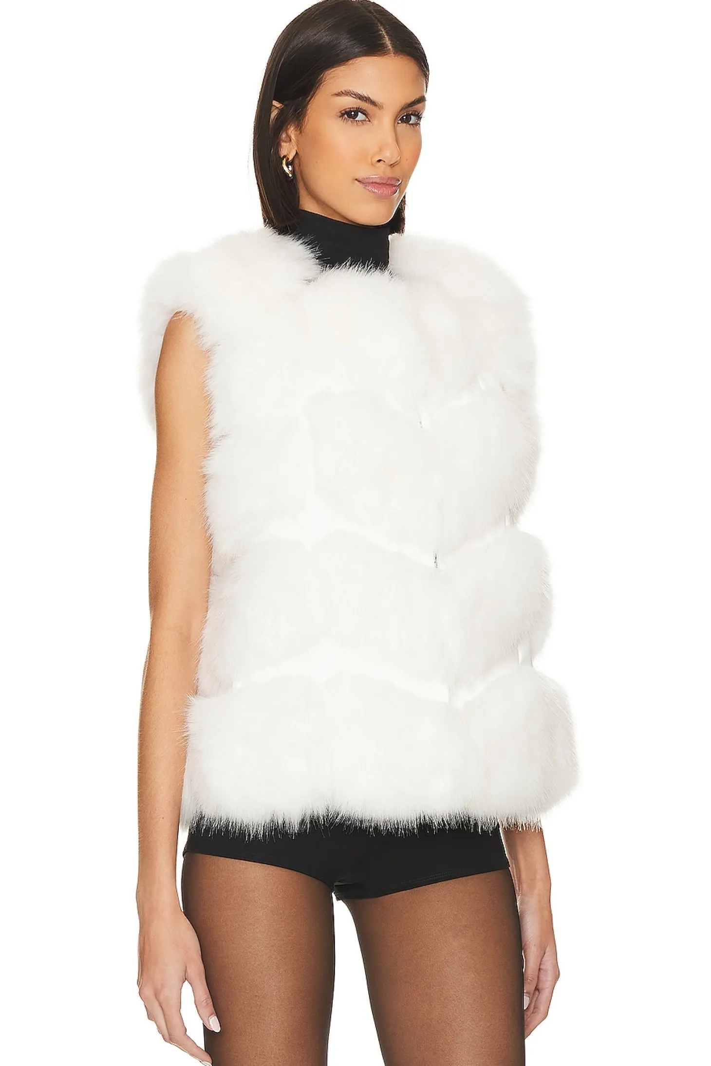 Self 1 & Lining: 100% polyester Self 2: 100% polyurethane.Made in China.Dry clean only.Front hook and eye closure.Side slant pockets.Faux fur and faux leather fabric