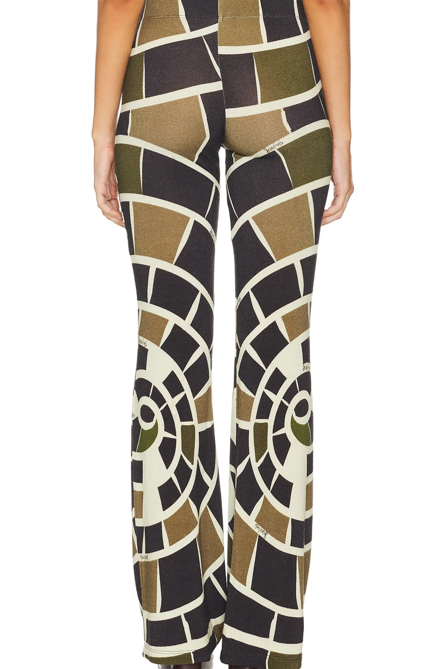 77% viscose 18% polyester 5% elastane.Made in Turkey.Machine wash.Pull-on styling with elastic waistband.Item not sold as set.Jersey knit fabric with logo detail throughout.16" at the knee breaks to 20" at the leg opening
