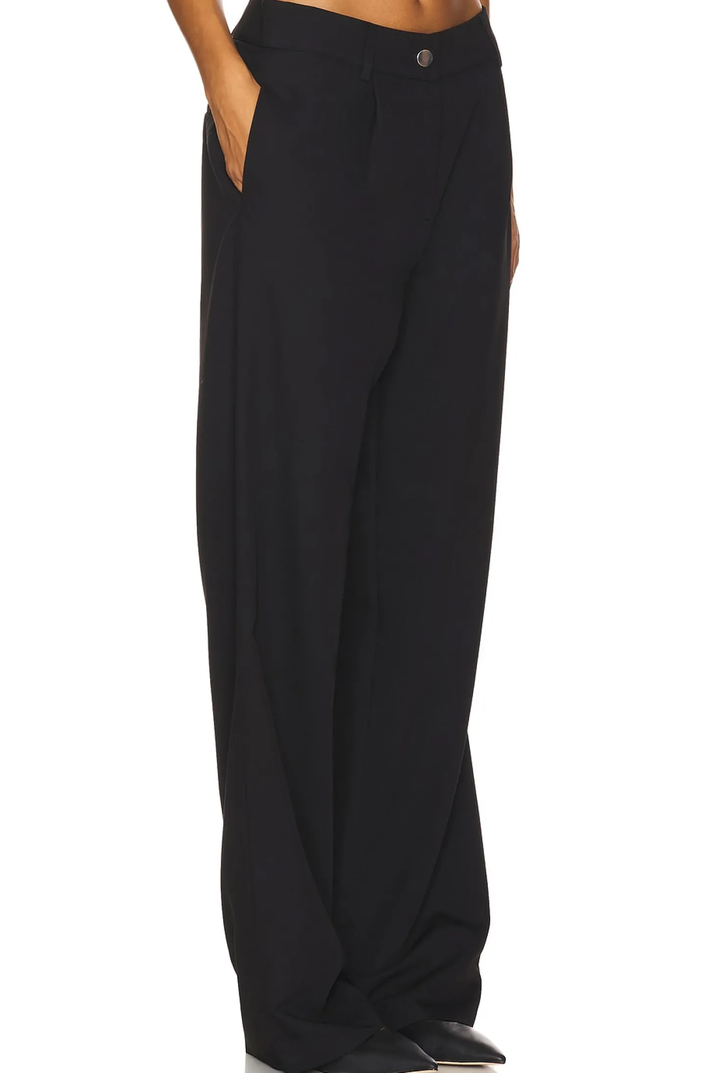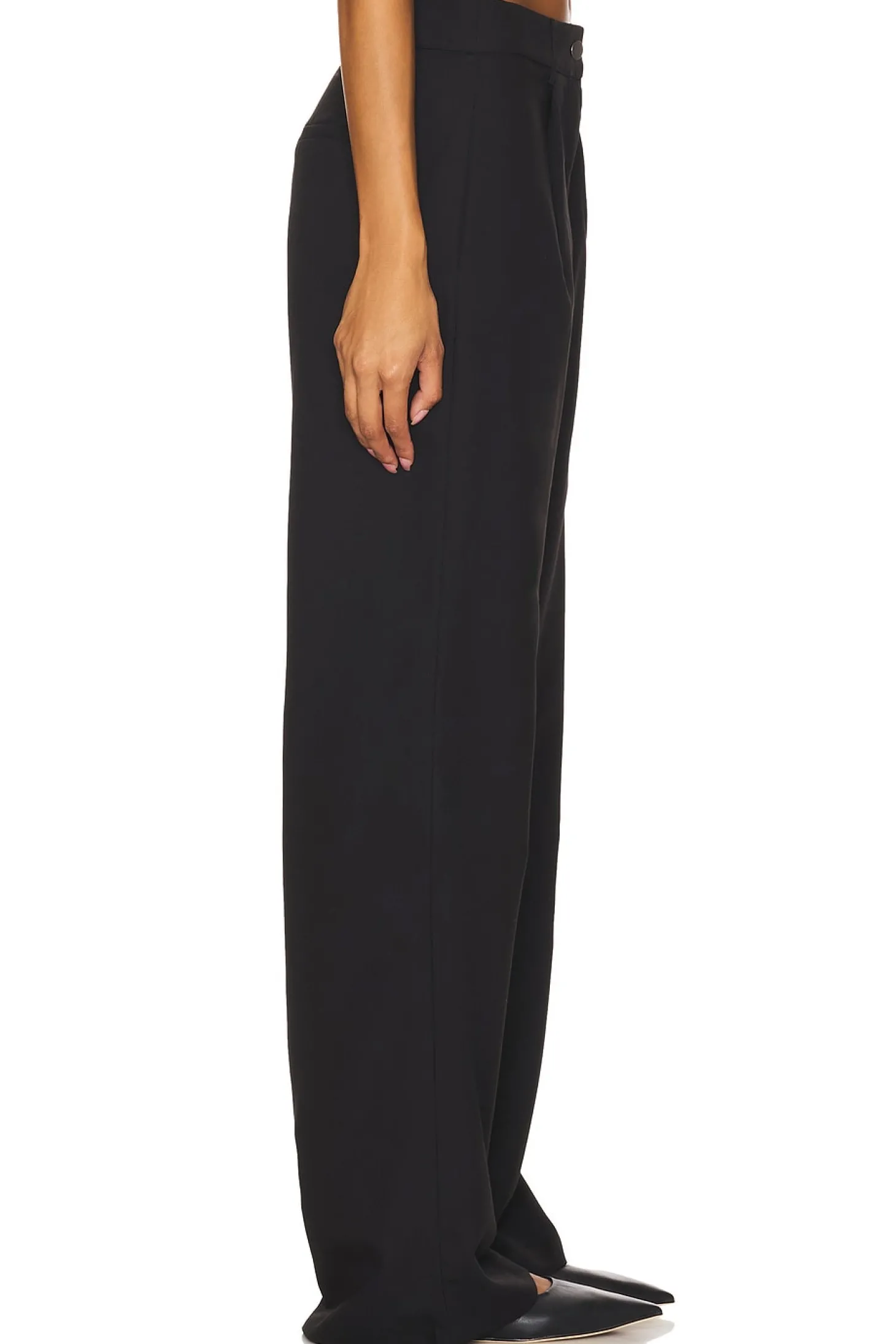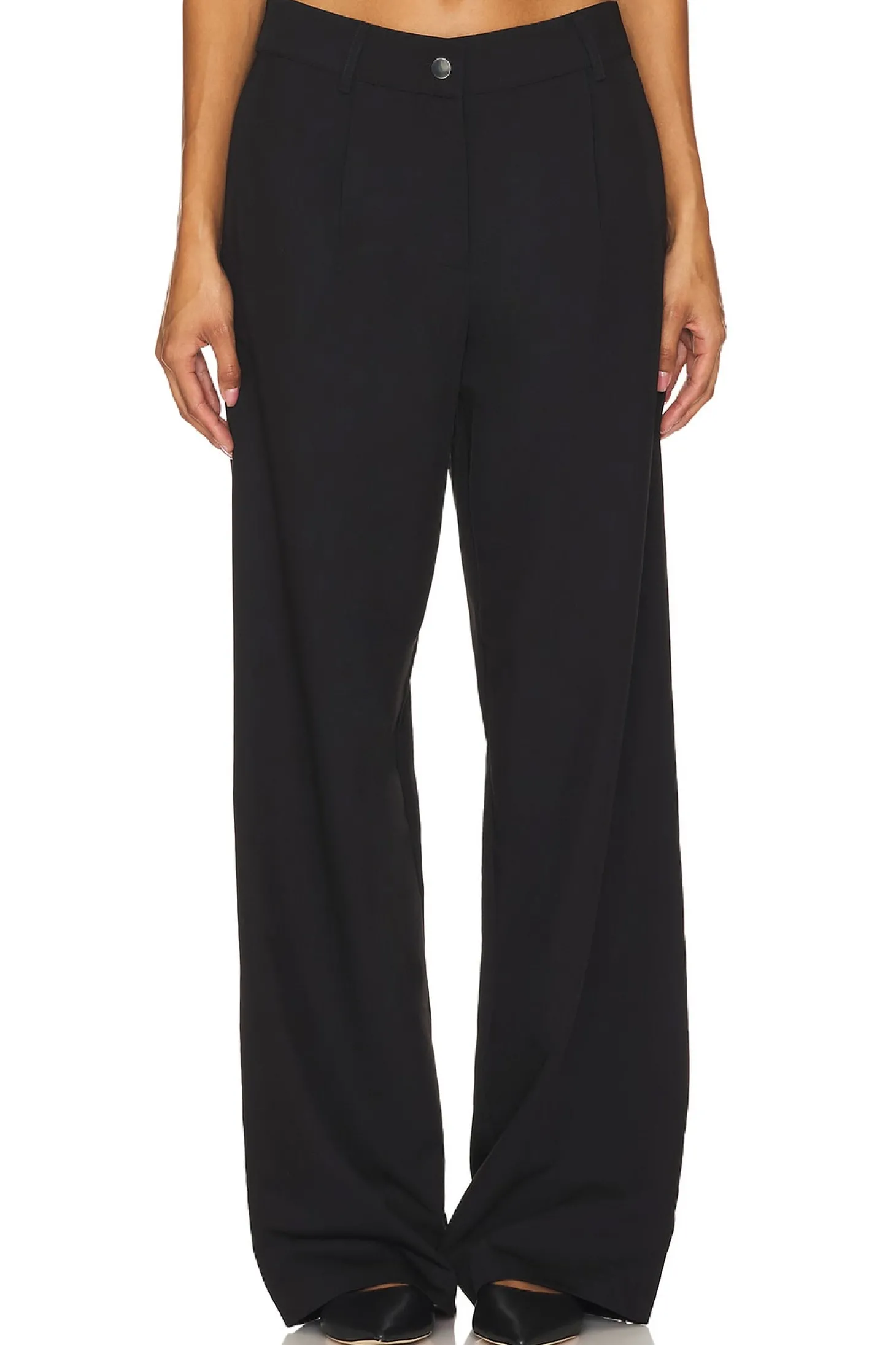 70% polyester 25% viscose 5% elastane.Made in China.Hand wash.Zip fly with button closure.3-pocket design.Front pleat styling.Crepe fabric.21" at the knee narrows to 20" at the leg opening