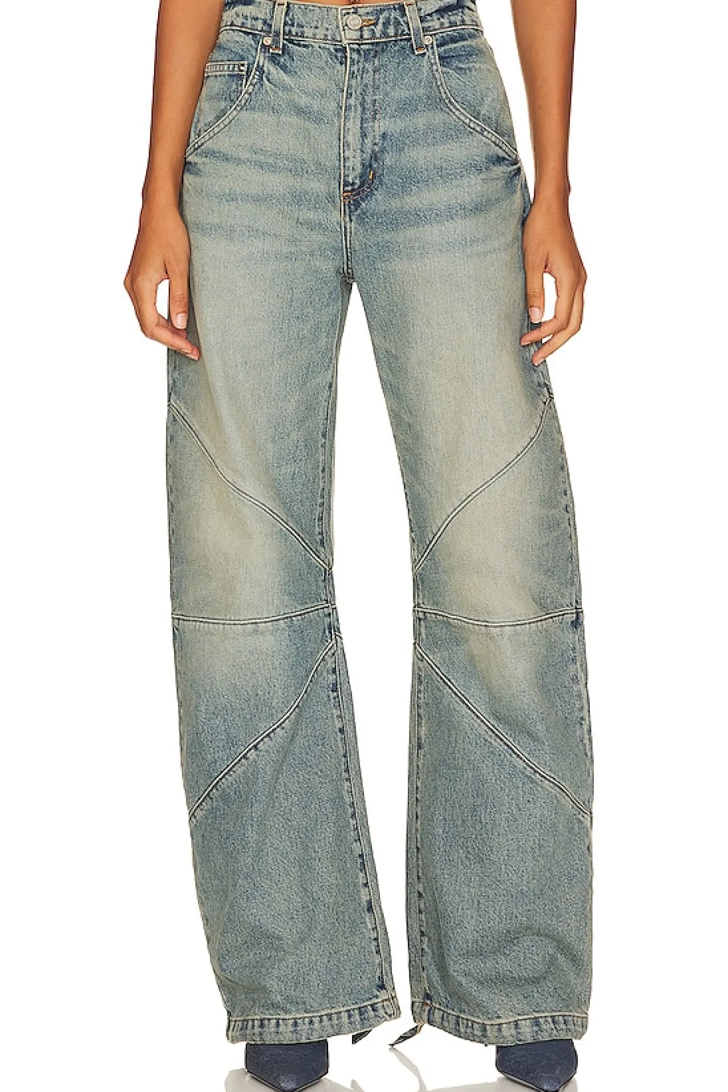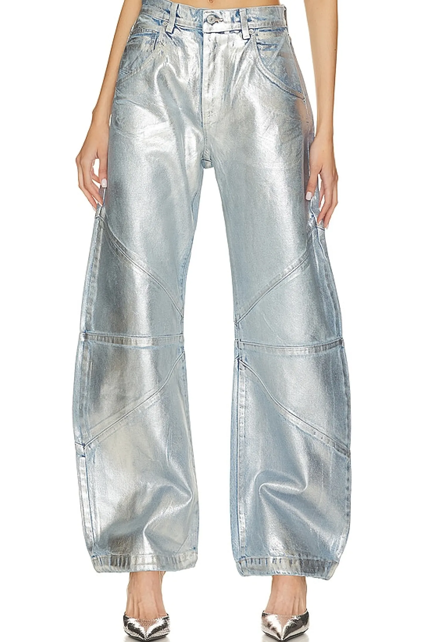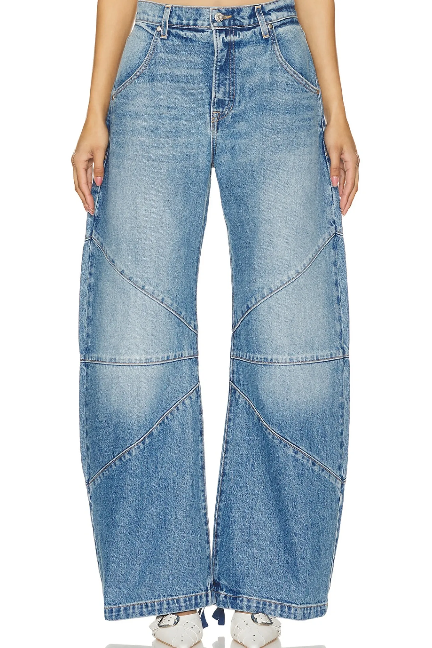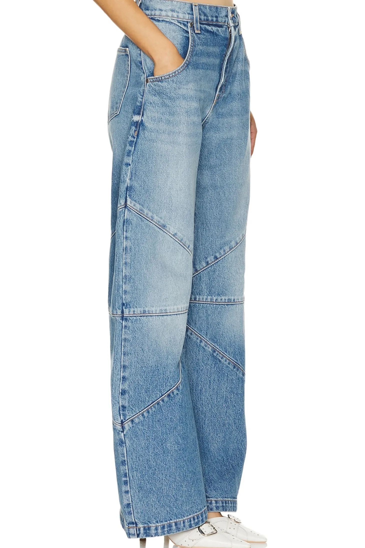 100% cotton.Made in USA.Machine wash.Zipper fly with button closure.Drawstring cuffs.22.5" at the knee narrows to 20" at the leg opening