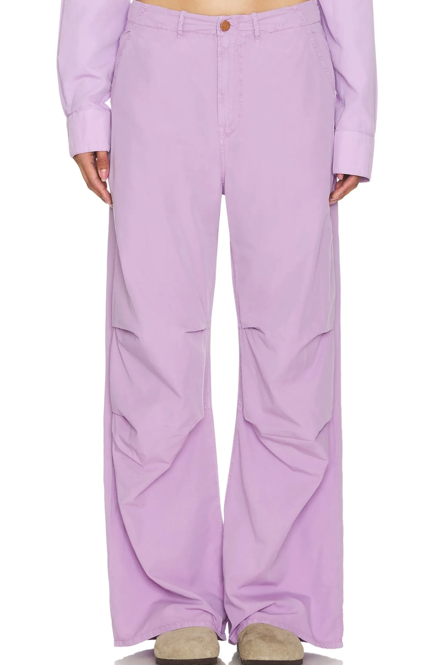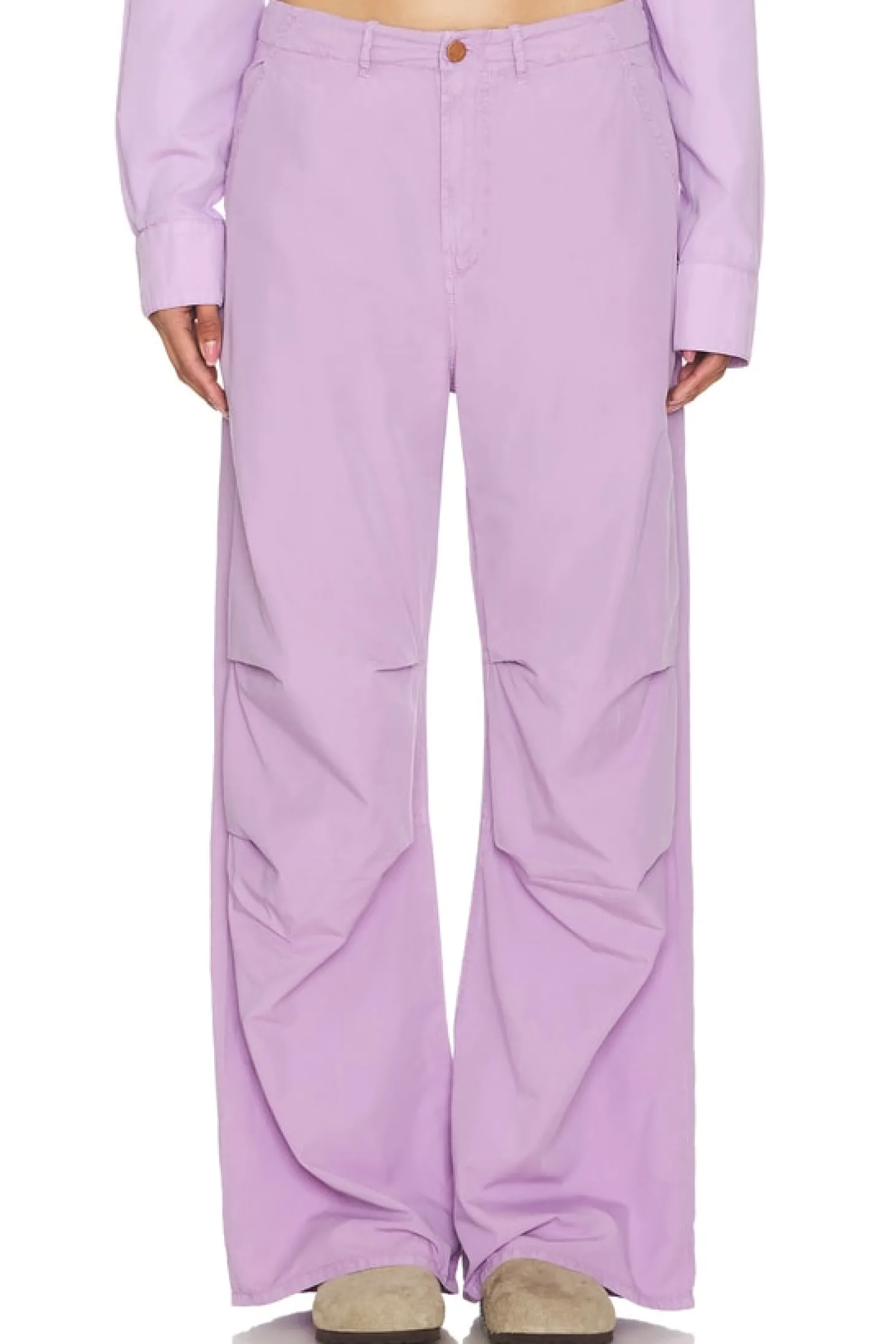 66% cotton 34% cupro.Made in Italy.Machine wash.12" at the knee narrows to 11.5" at the leg opening