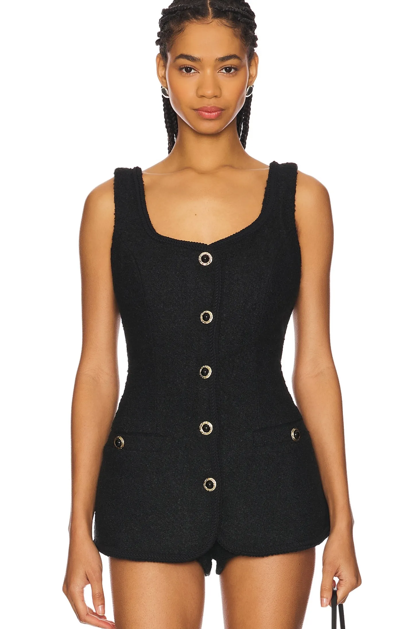 Self: 45% polyester 35% acrylic 20% wool Lining: 100% viscose.Made in China.Dry clean only.Front button closure.Front pockets.Lightweight tweed fabric.Item not sold as set