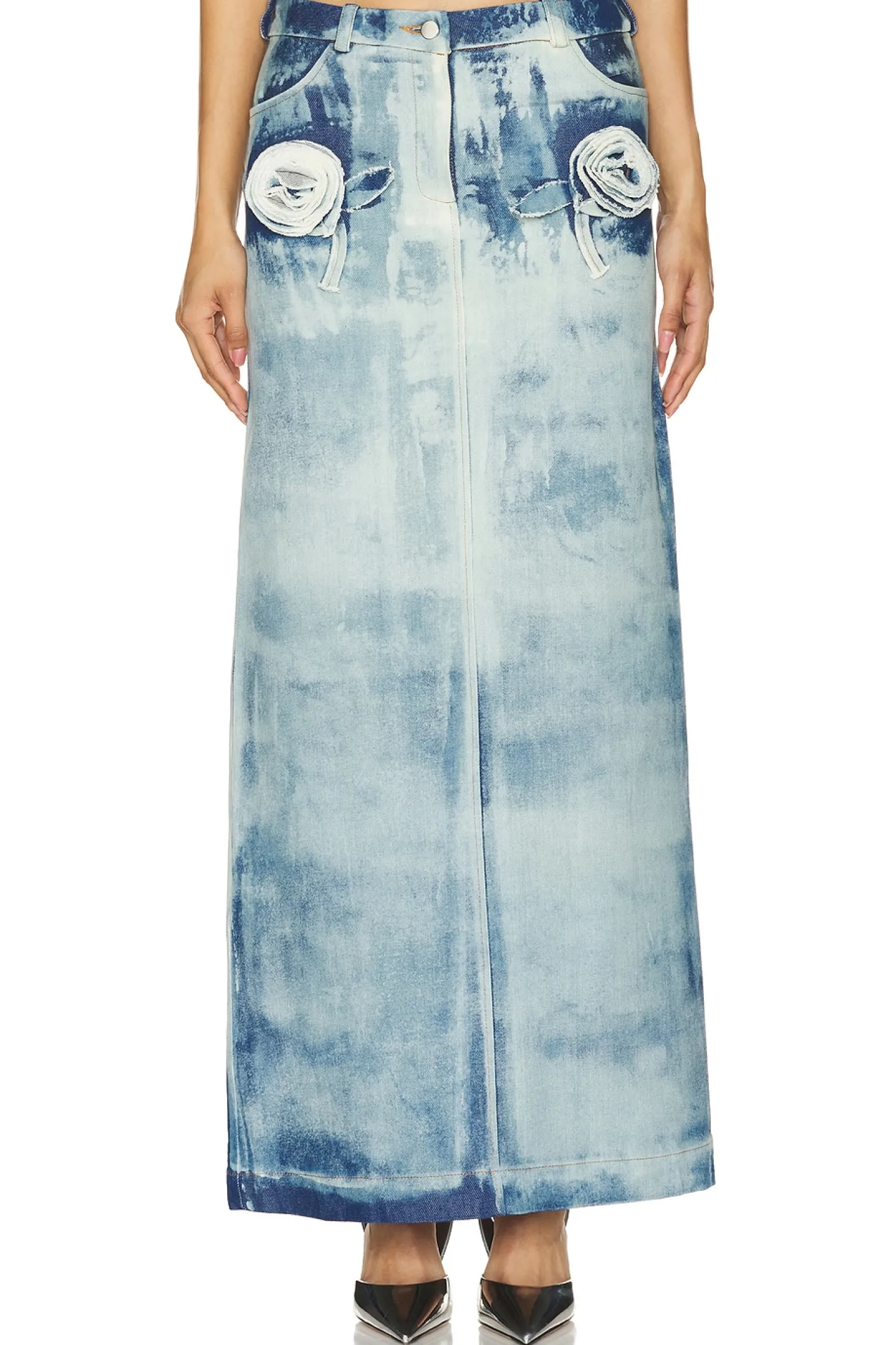 100% cotton.Made in Georgia.Machine wash.Zipper fly with button closure.Side slant pocket styling.Skirt measures approx 41" in length