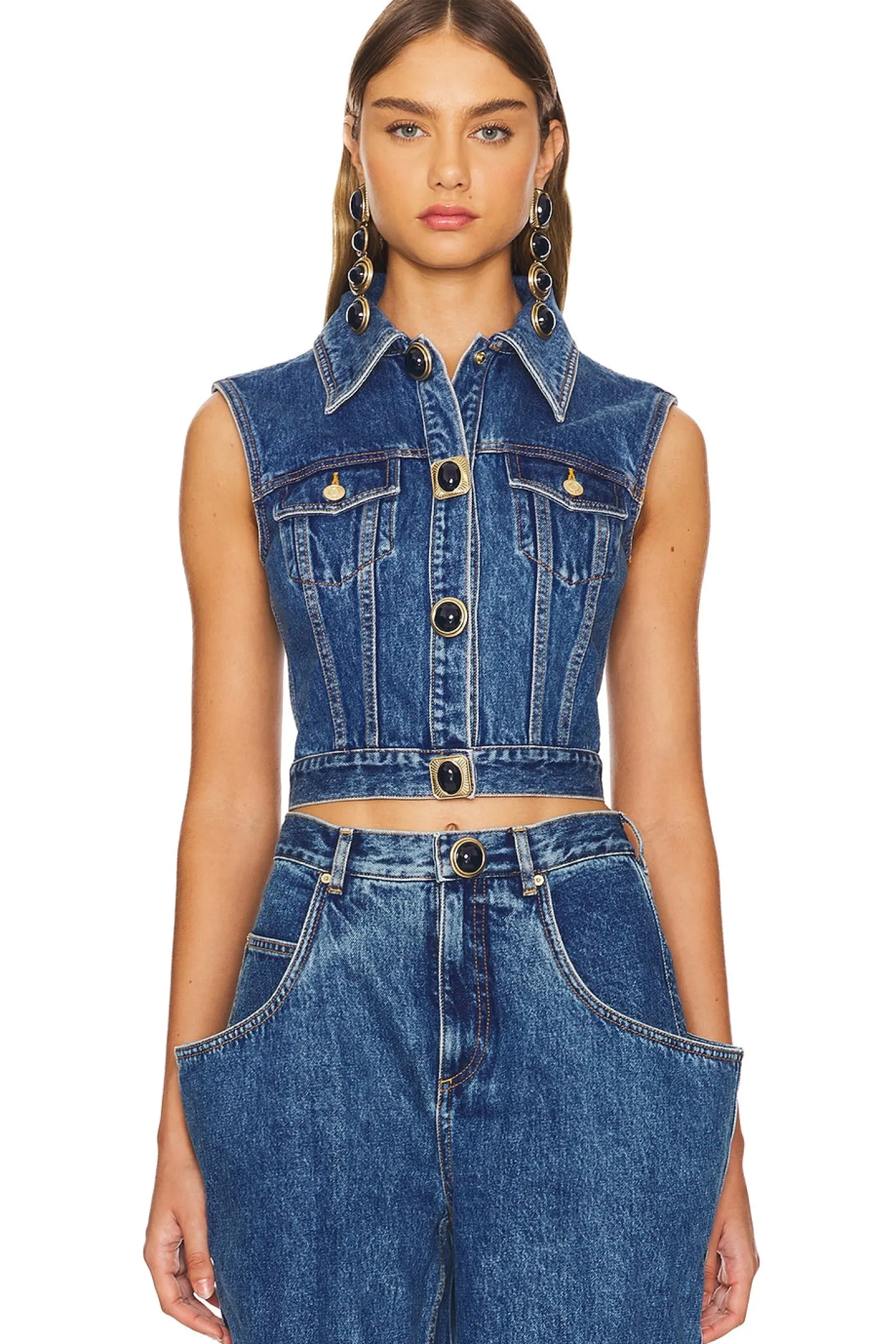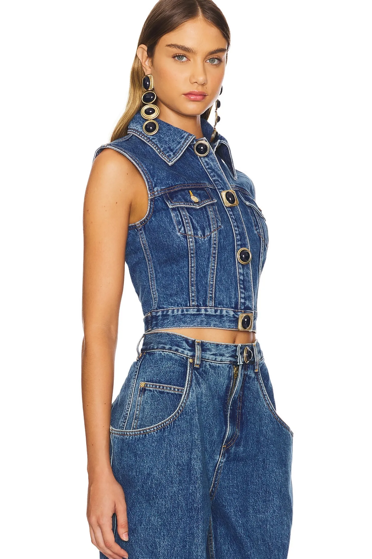 Gemstone Button Denim Gilet