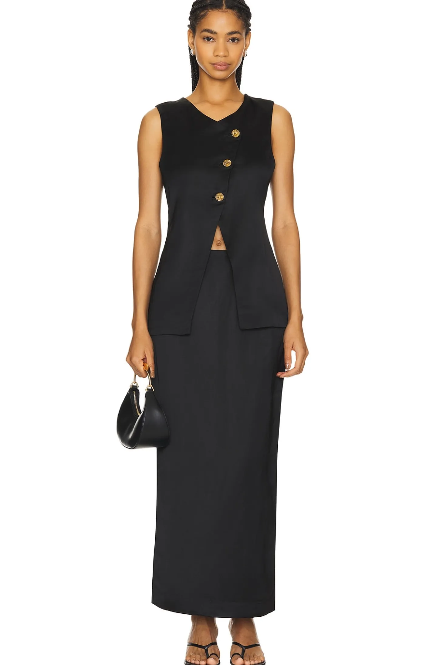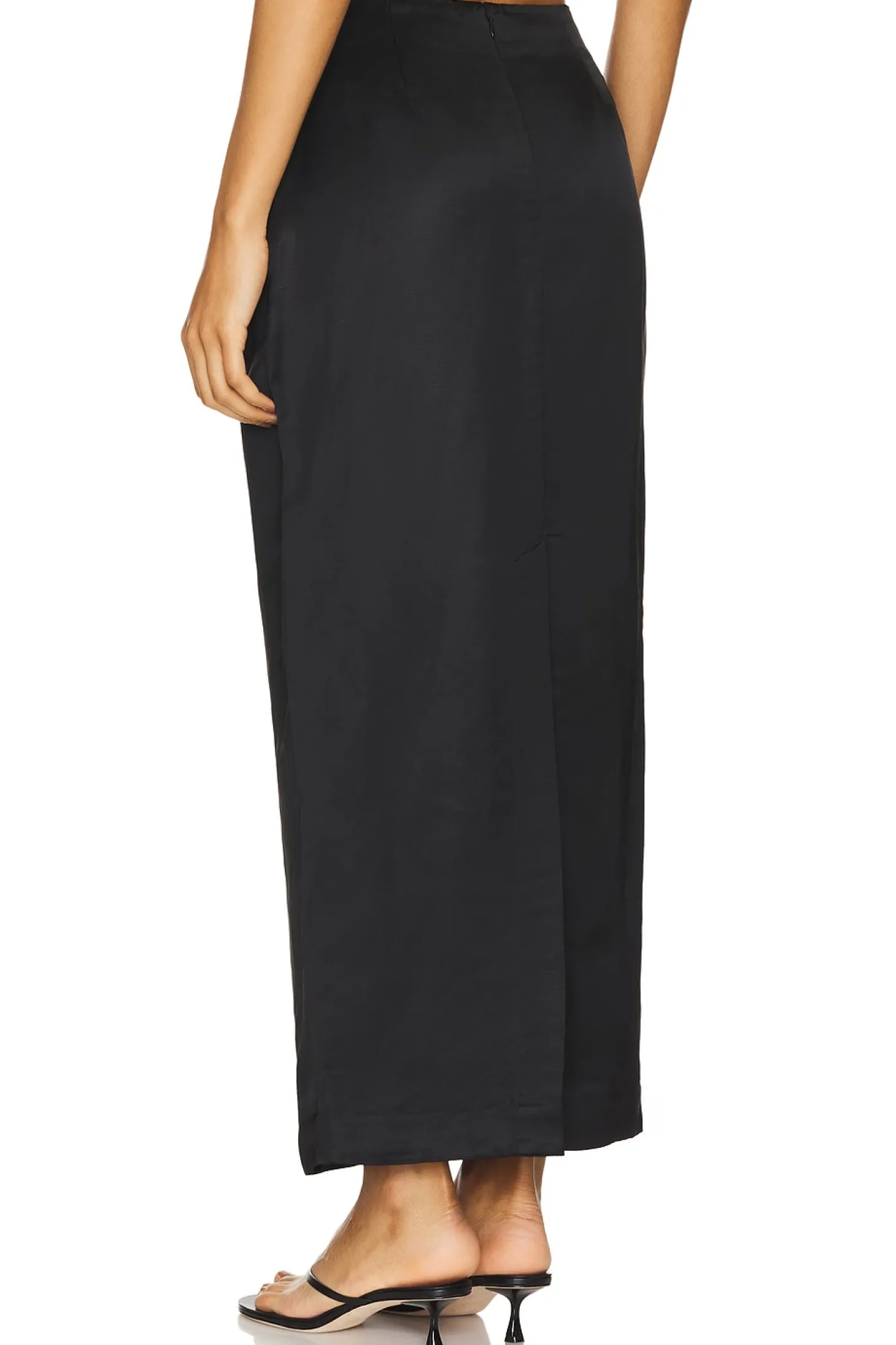 Self: 55% viscose 45% linen Lining: 100% cotton.Made in India.Dry clean only.Fully lined.Hidden back zipper closure.Side slant pockets.Satin linen fabric Item not sold as a set.Skirt measures approx 39" in length