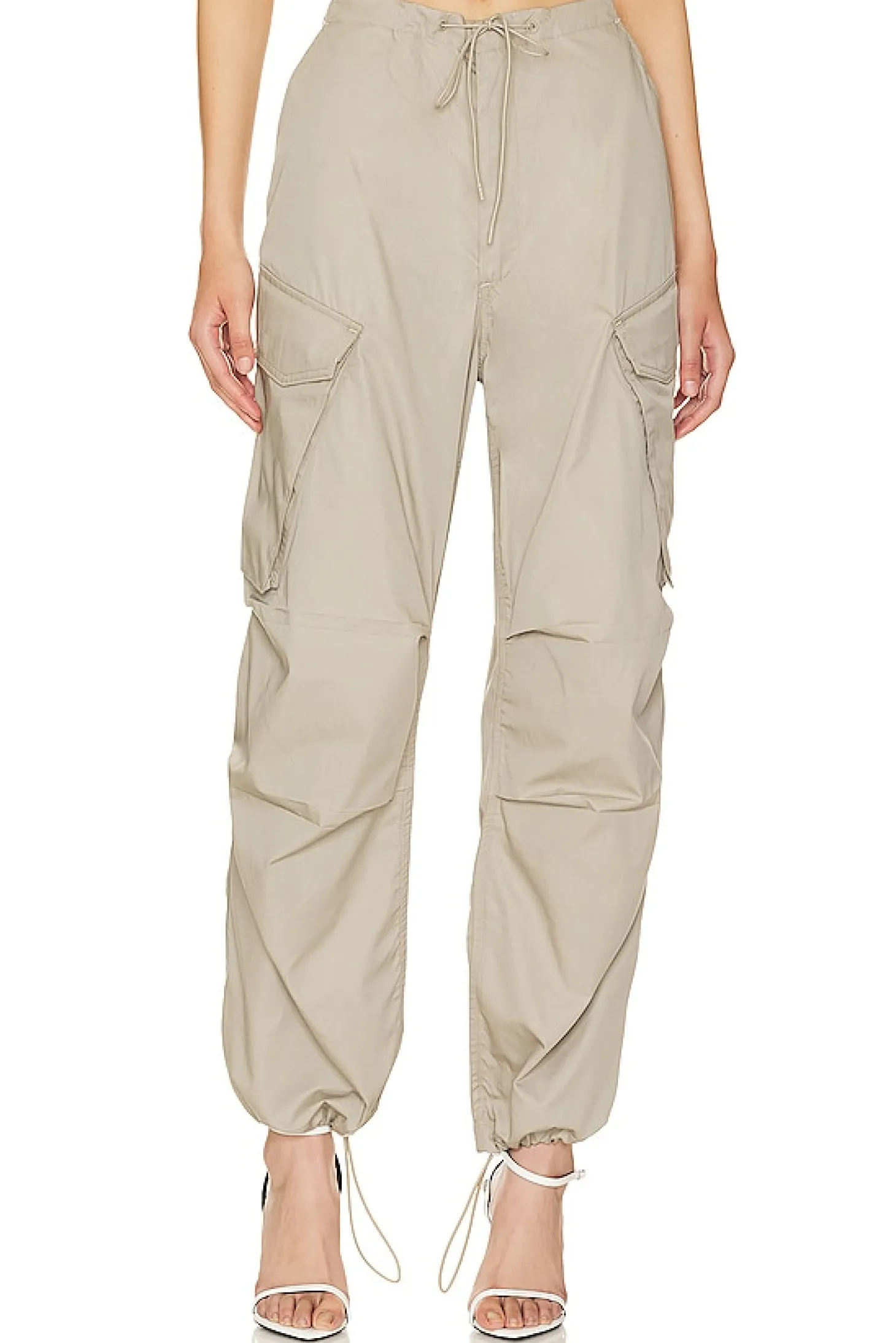 100% cotton.Made in USA.Machine wash.Zip fly with button and drawstring closure.5-pocket design.Midweight poplin fabric.Adjustable toggle detail at hem.20" at the knee and 20" at the leg opening