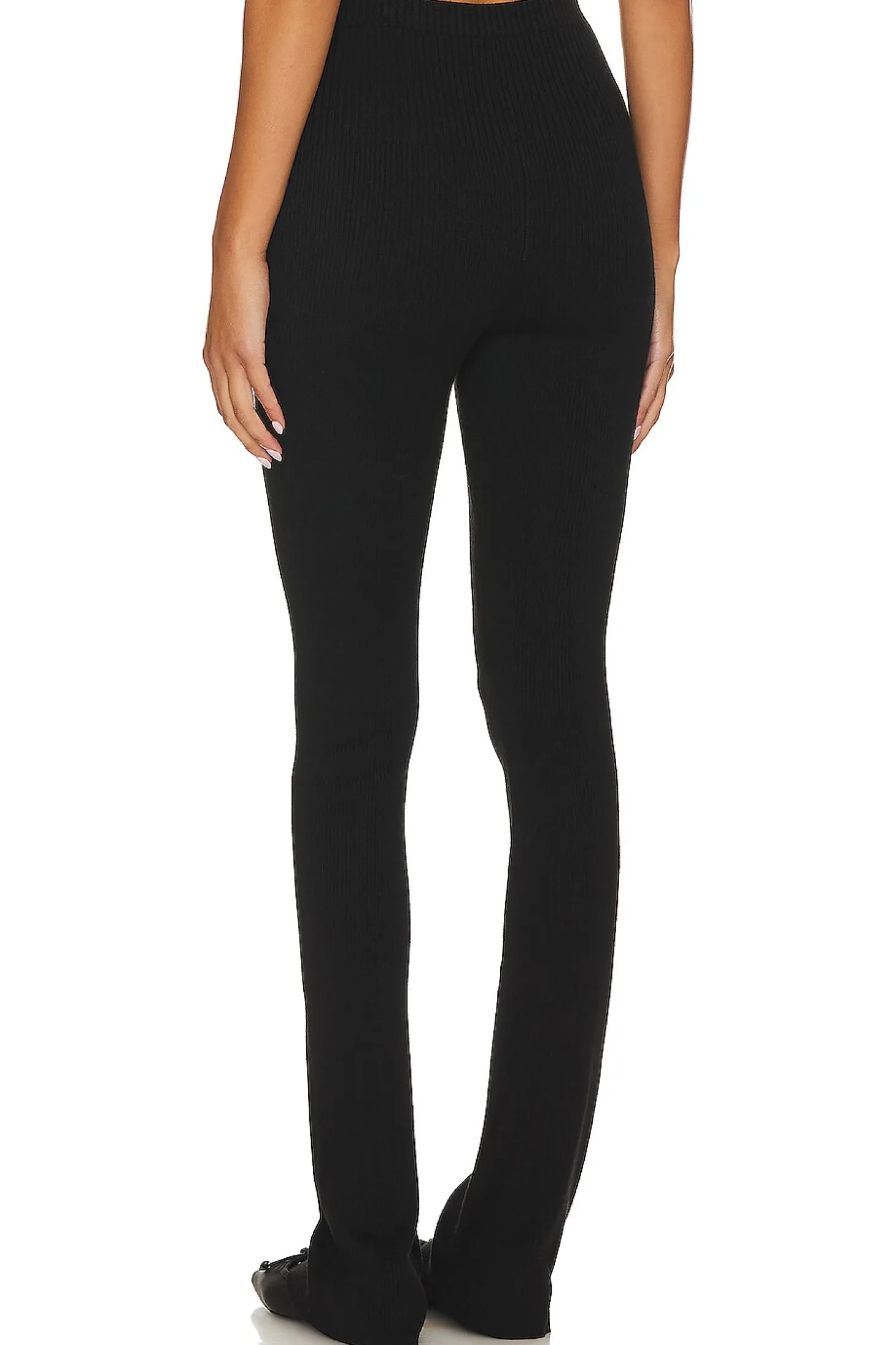 80% viscose 20% cotton.Made in China.Hand wash cold.Pull-on styling with elastic waistband.Midweight ribbed knit fabric.12" at the knee breaks to 15" at the leg opening
