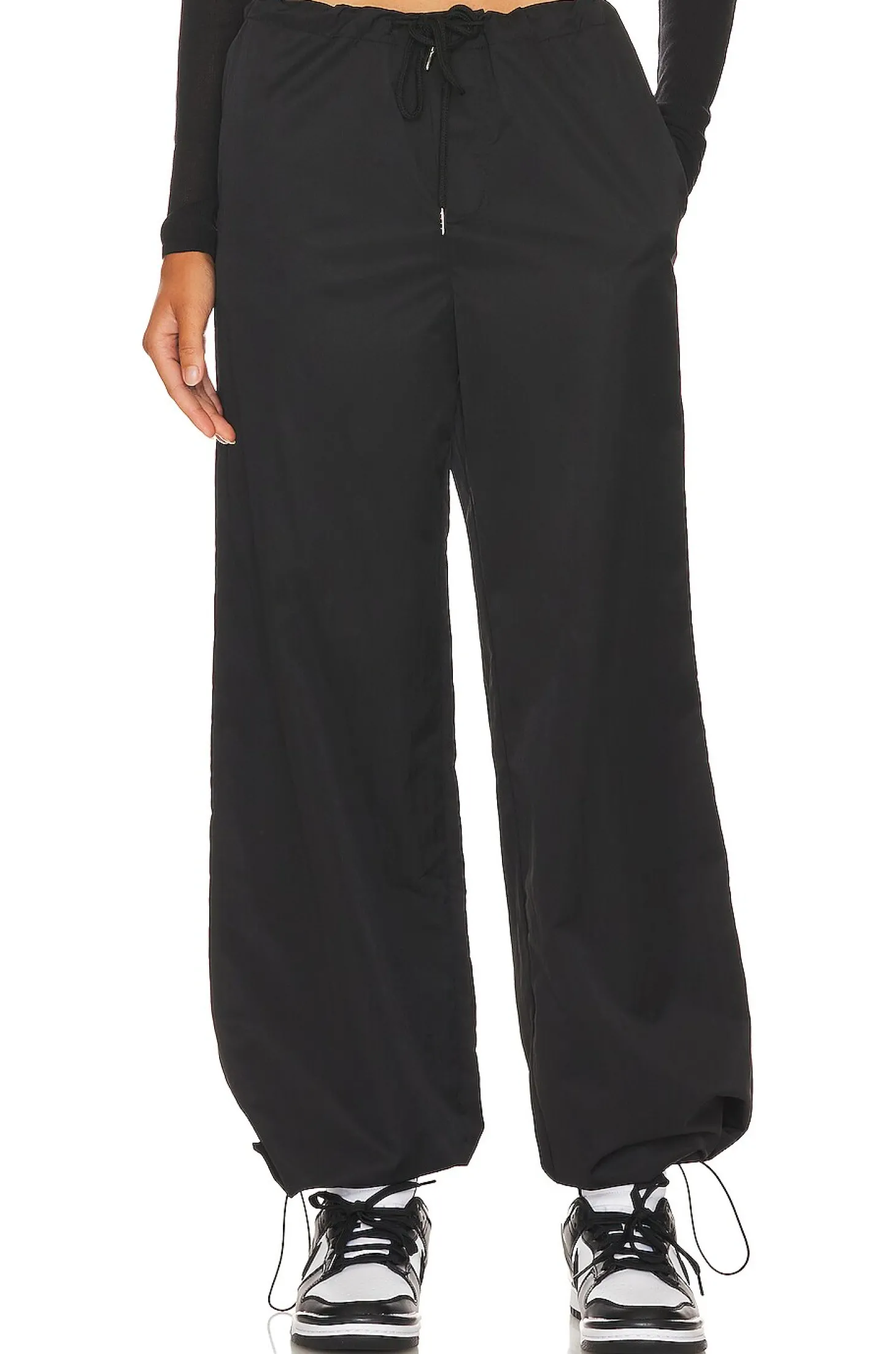 100% nylon.Made in China.Hand wash.Drawstring waist tie closure.4-pocket styling.Drawstring pull-cord at hem.Ripstop fabric.22" at the knee narrows to 16" at the leg opening