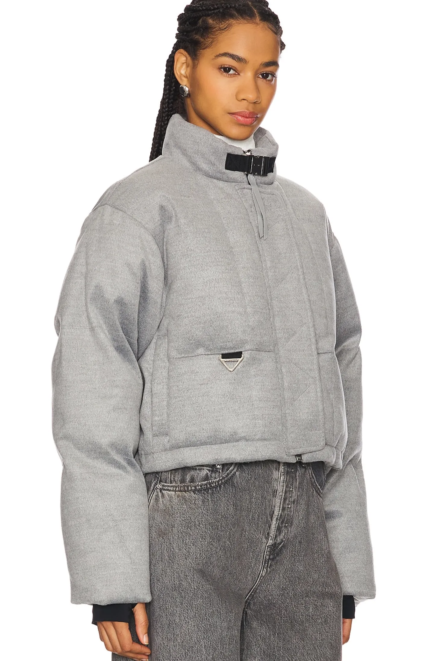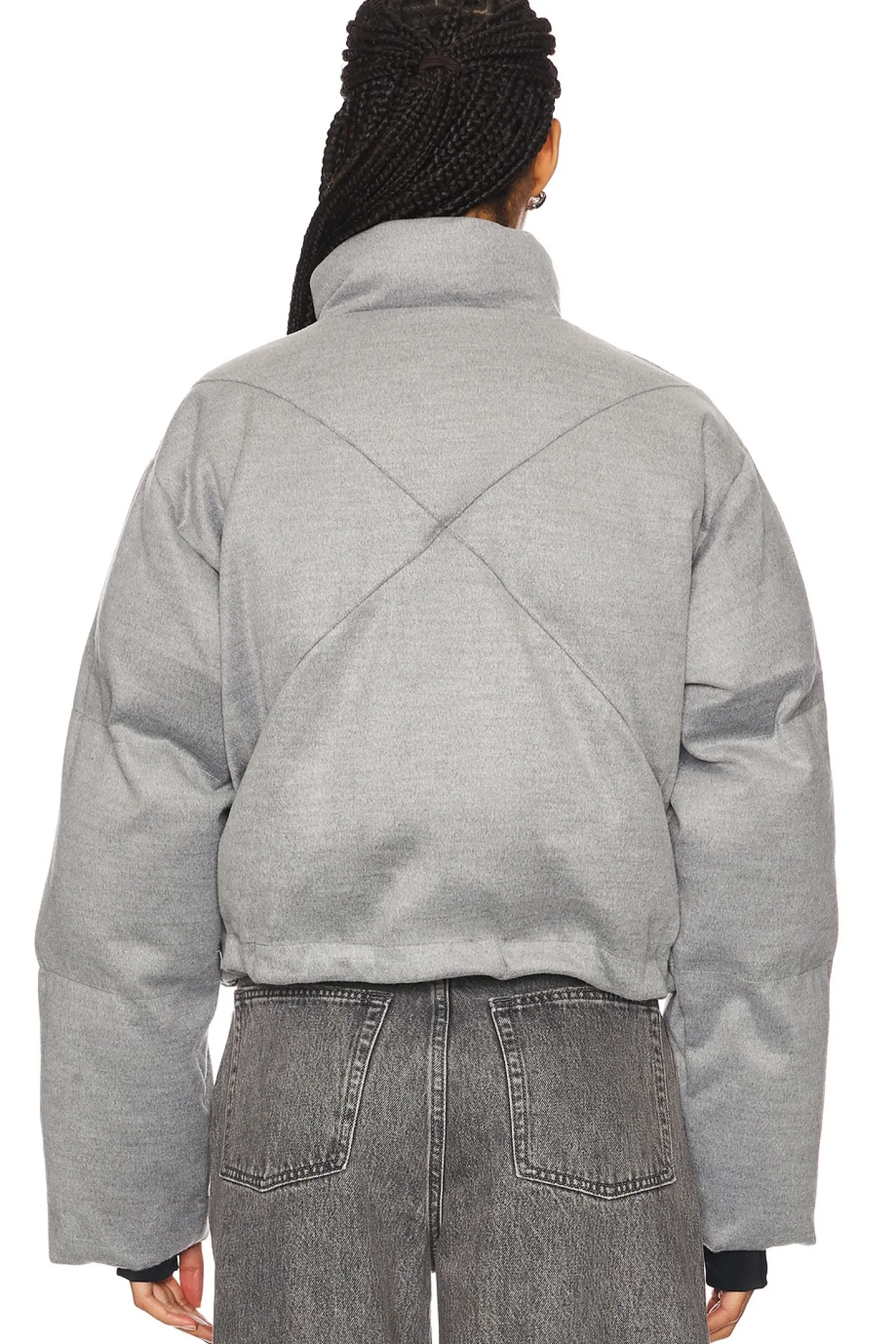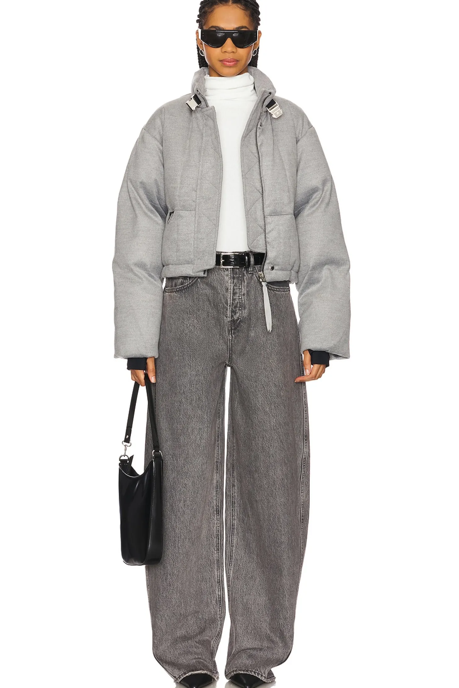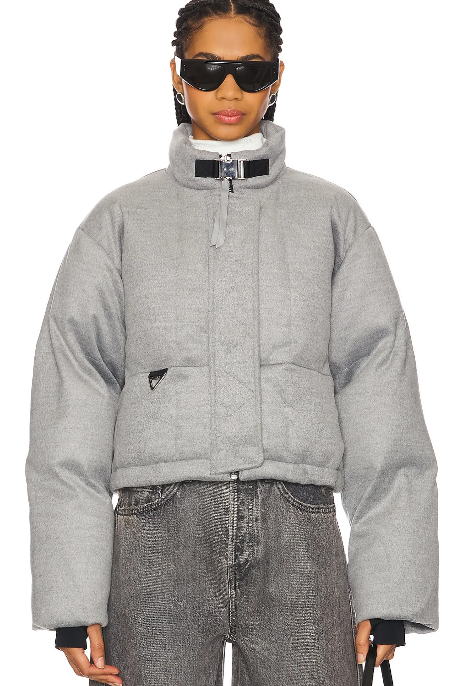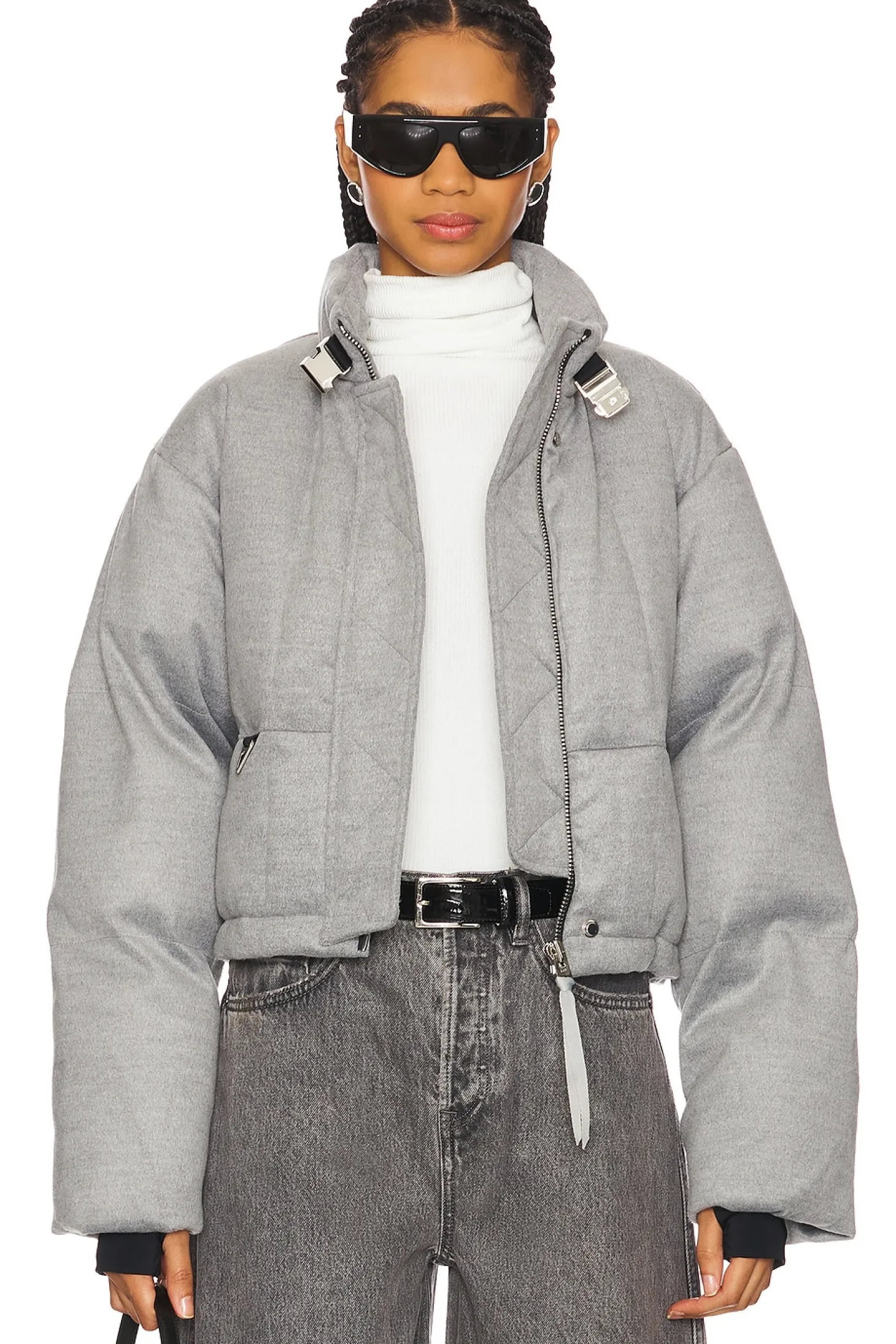 Self: 75% polyester 22% viscose 3% elastane Lining: 100% polyester Contrast Fabric: 88% polyamide 12% elastane Filling: 100% polyester.Made in China.Dry clean only.Hidden front zipper closure.Side pockets.Padded ripstop fabric