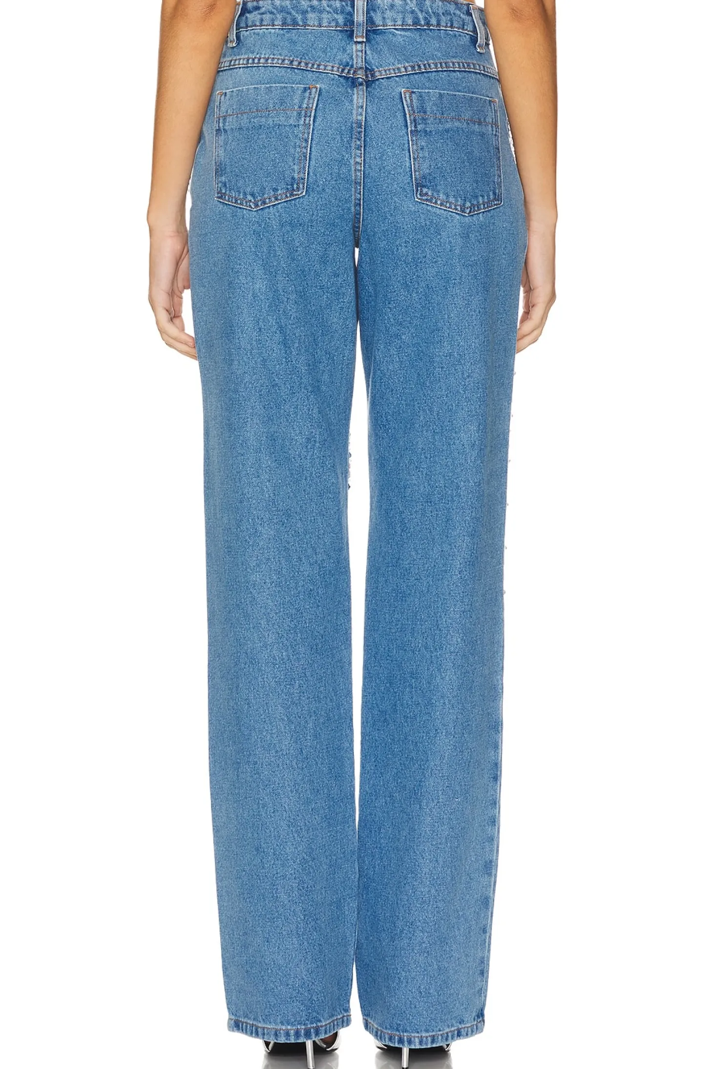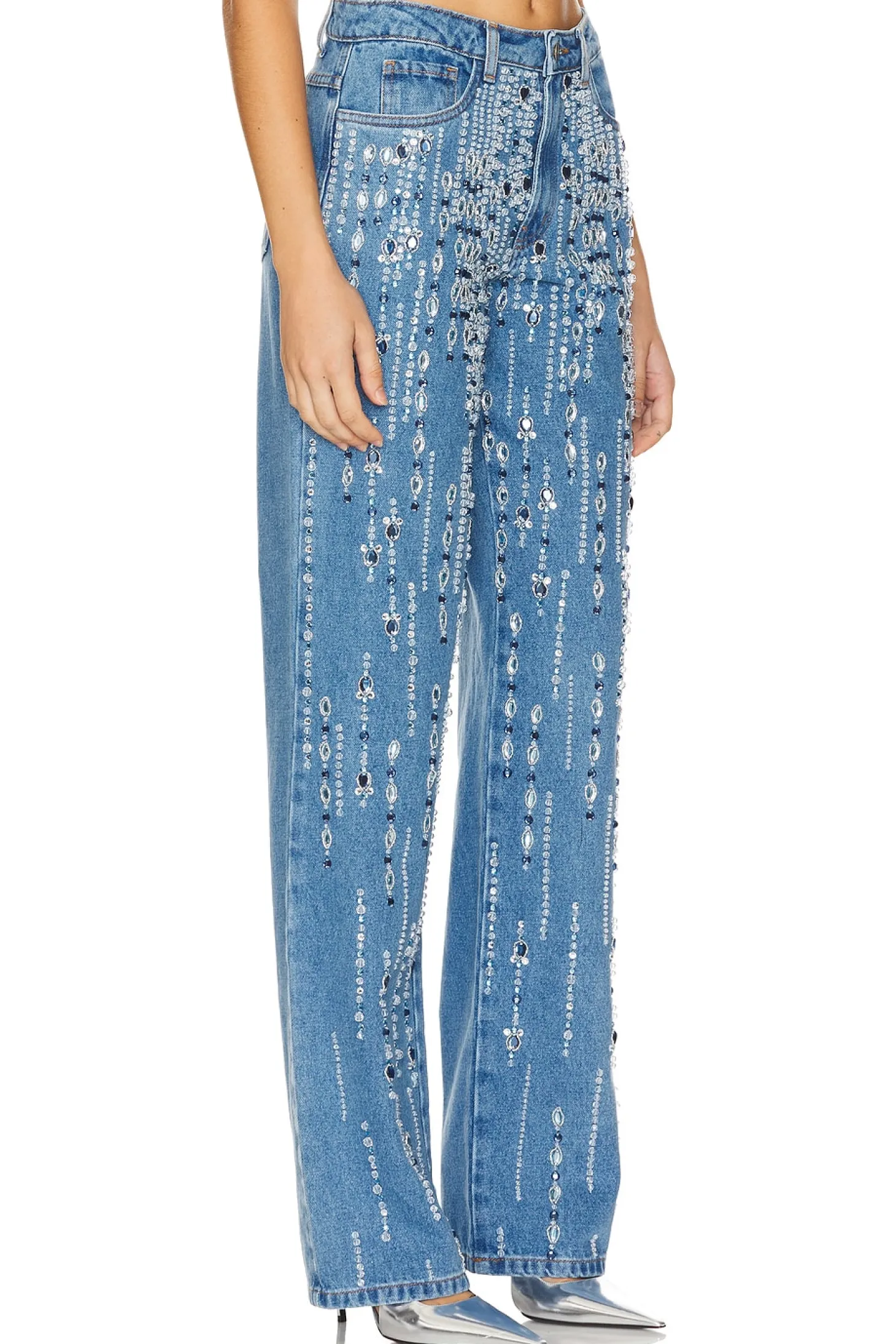 100% cotton.Made in Brazil.Hand wash.Zip fly with button closure.5-pocket styling.Denim fabric with rhinestone embellishment at front.Item not sold as a set.19" at the knee and narrows to 18" at the leg opening