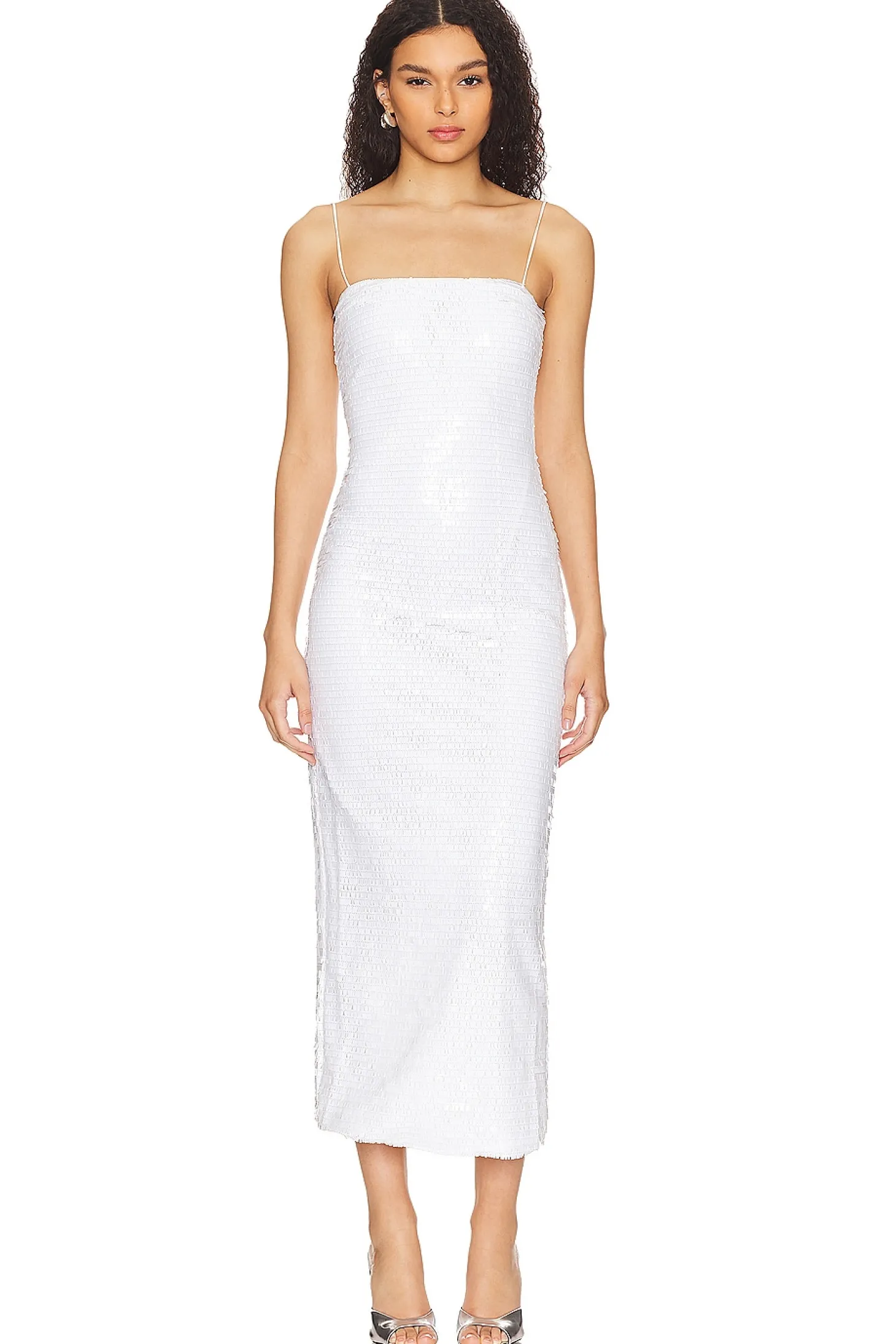Self: 100% sequin Lining: 95% polyester 5% spandex.Made in China.Hand wash.Double lined.Hidden back zipper closure.Midweight sequin embellished fabric with back vent