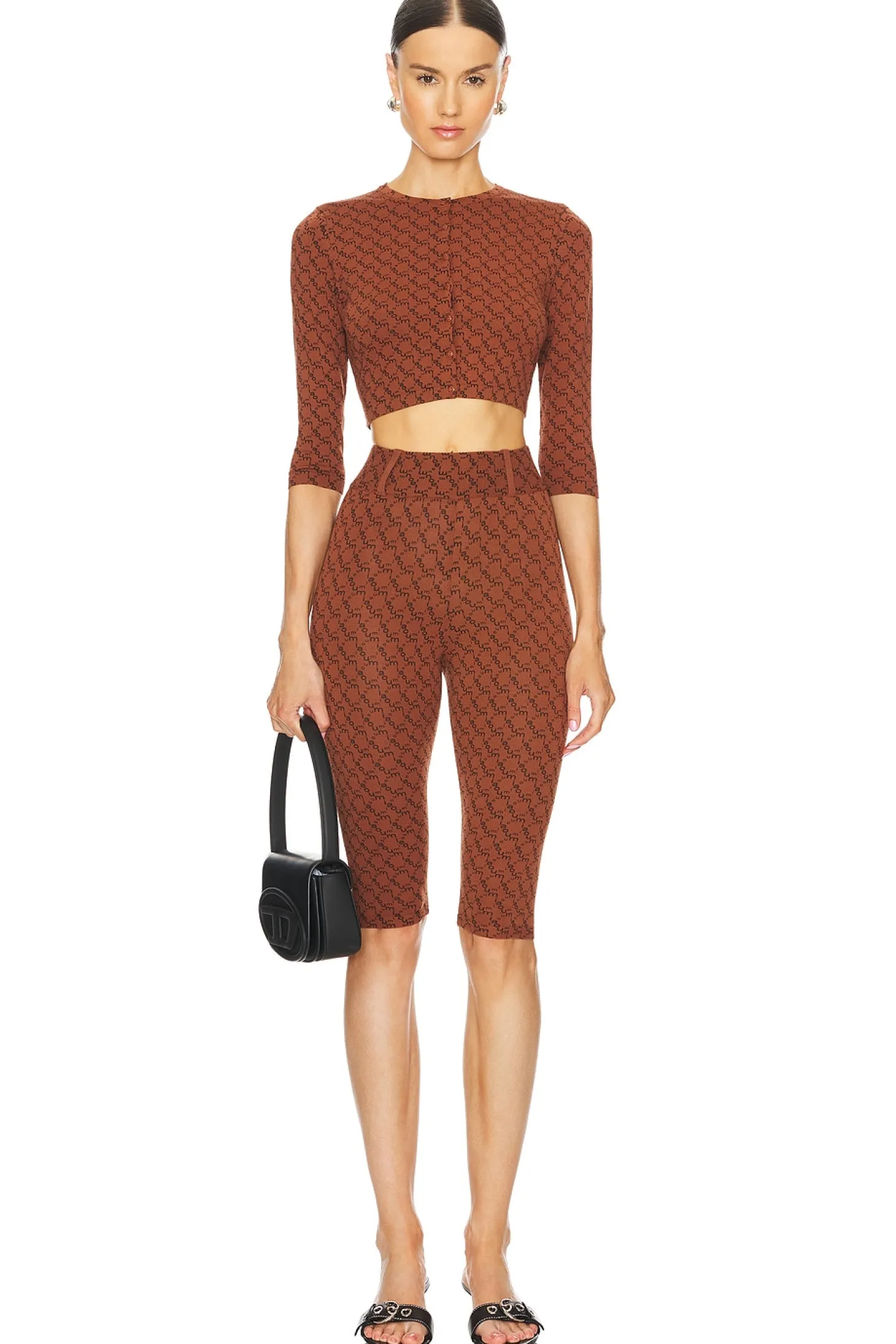 63% viscose 37% nylon.Made in China.Dry clean only.Pull-on styling.Jersey fabric.Item not sold as set.Capri measures approx 23" in length