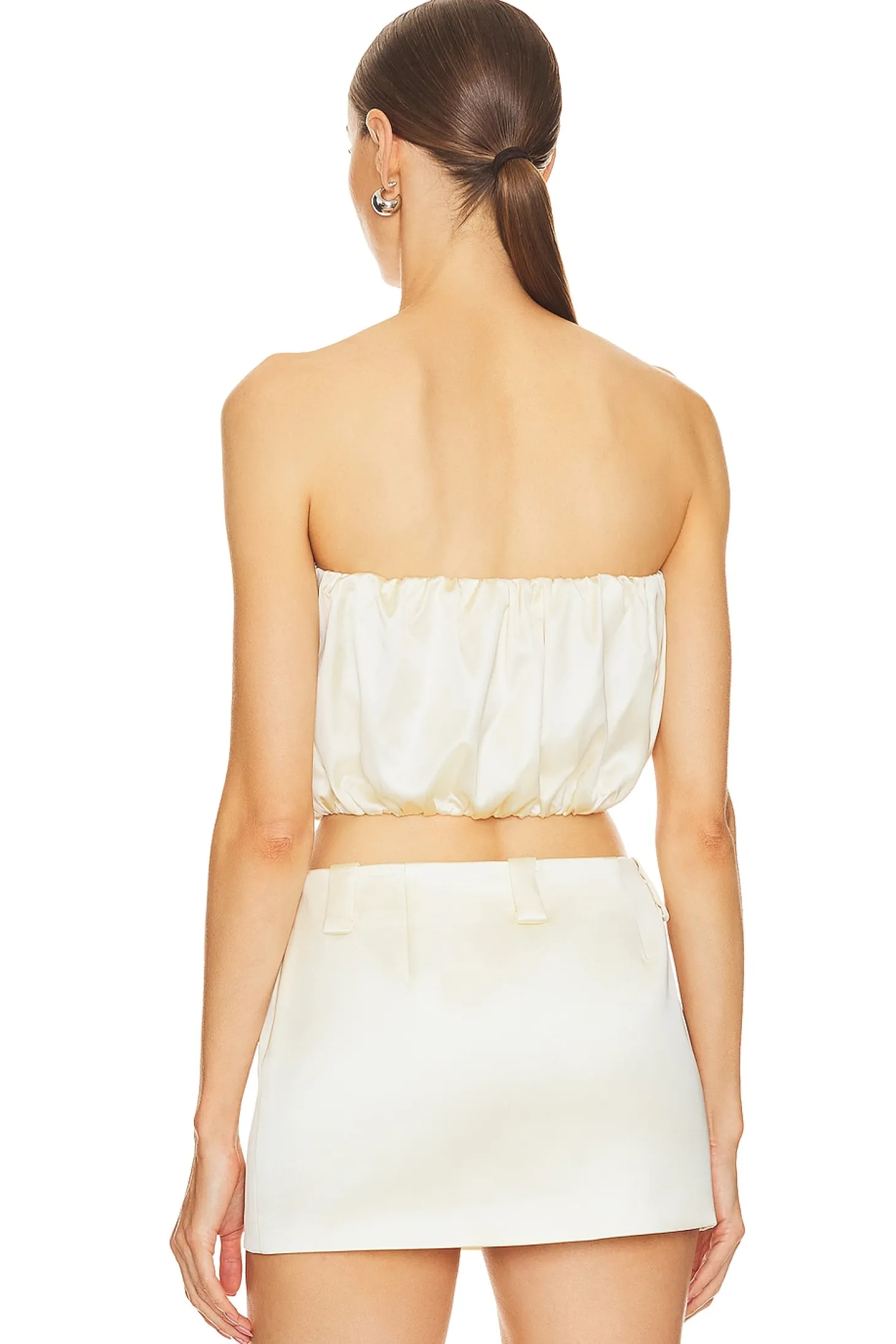 Self: 73% acetate 25% nylon 2% elastane Lining: 55% polyester 45% rayon.Made in China.Hand wash.Satin fabric with elastic neckline and hem