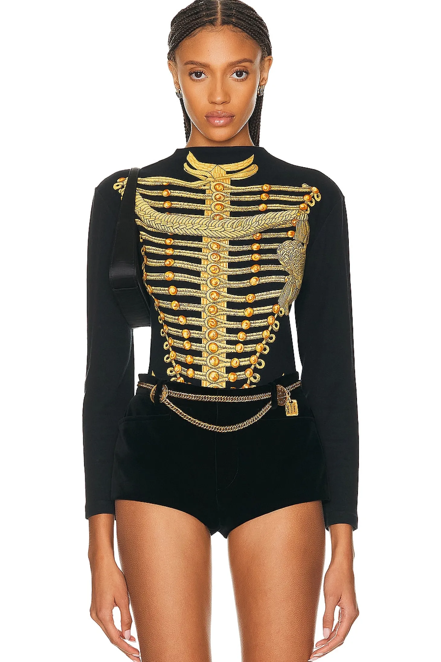 100% cotton.Made in Italy.Dry clean only.Back button loop closure.Jersey fabric with graphic print.Excellent.Product appears unused with the possibility of missing accessories and minor wear as stated under cu.Minor signs of wear.Pilling throughout.Original packaging not included