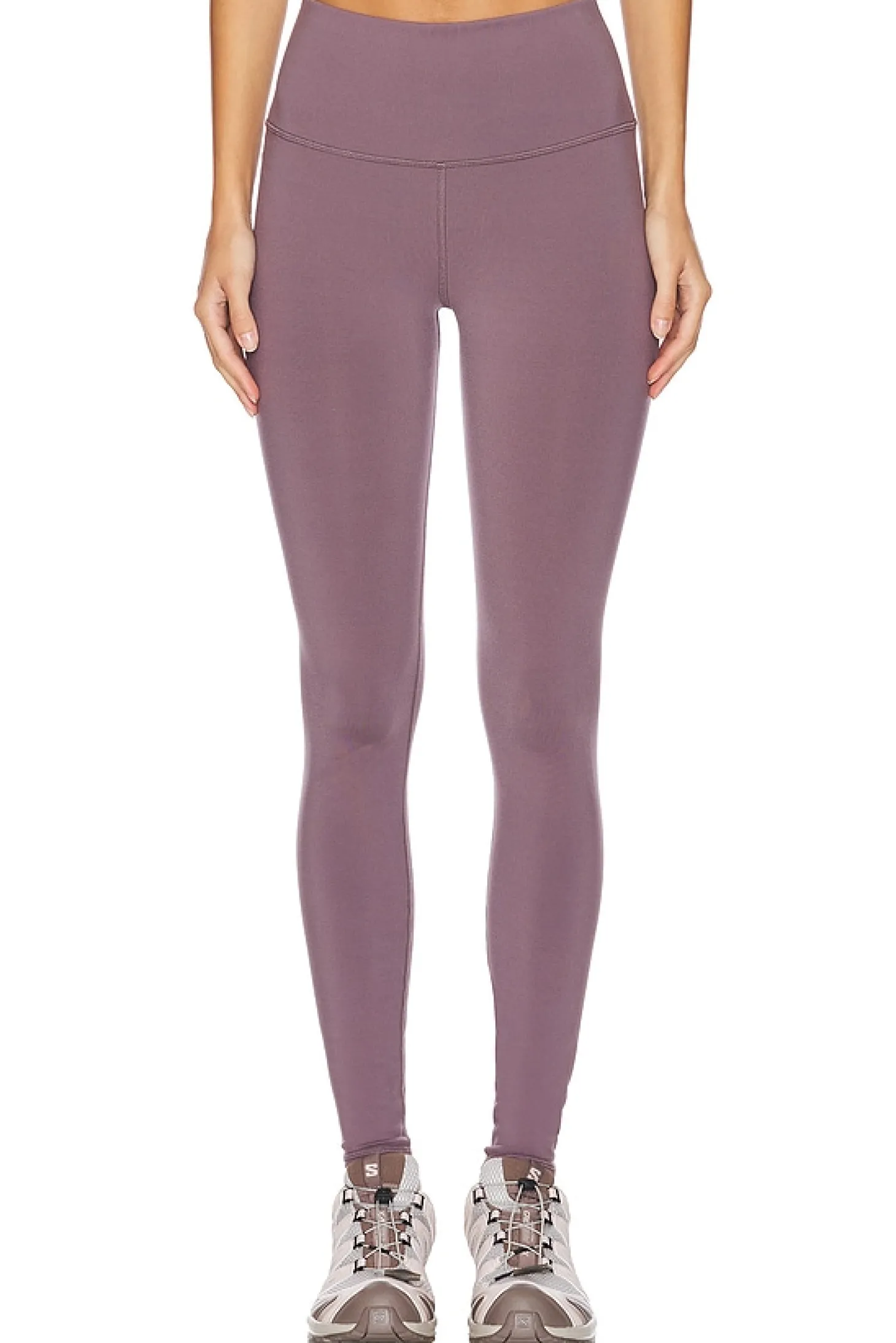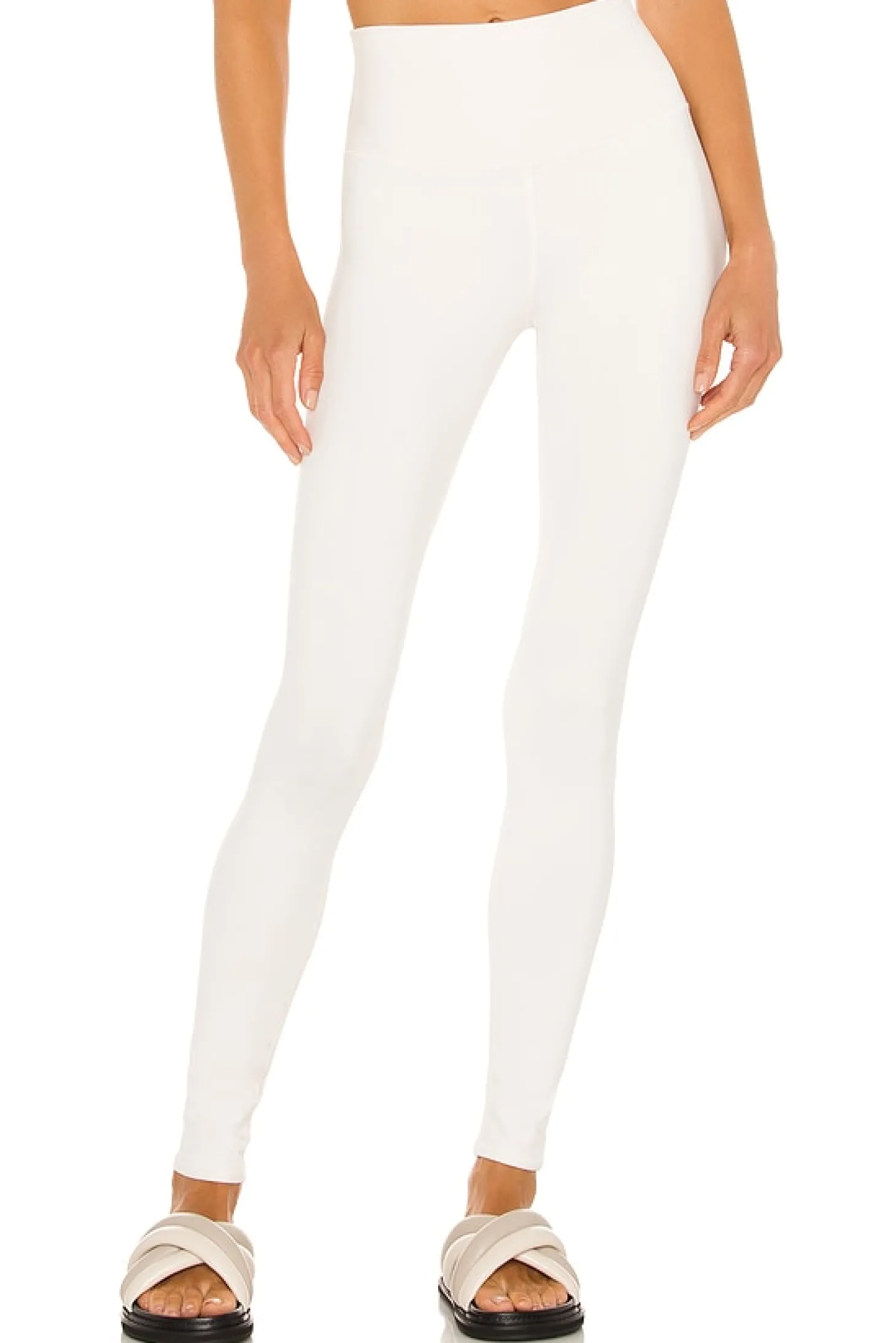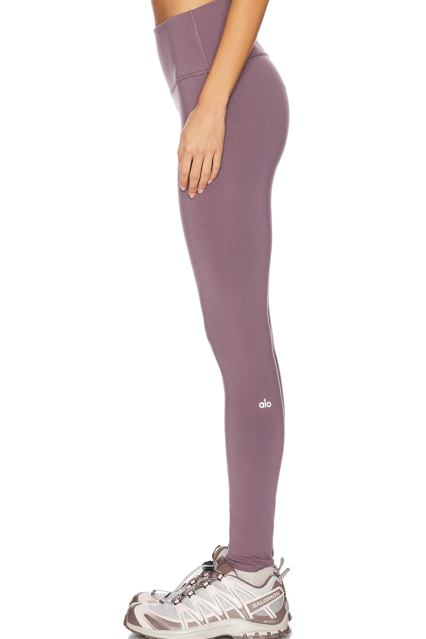 81% polyester 19% elastane.Made in Vietnam.Machine wash.Pull-on styling with elastic waistband.Stretch fabric and fit.Alo logo on side.12" at the knee narrows to 8" at the leg opening