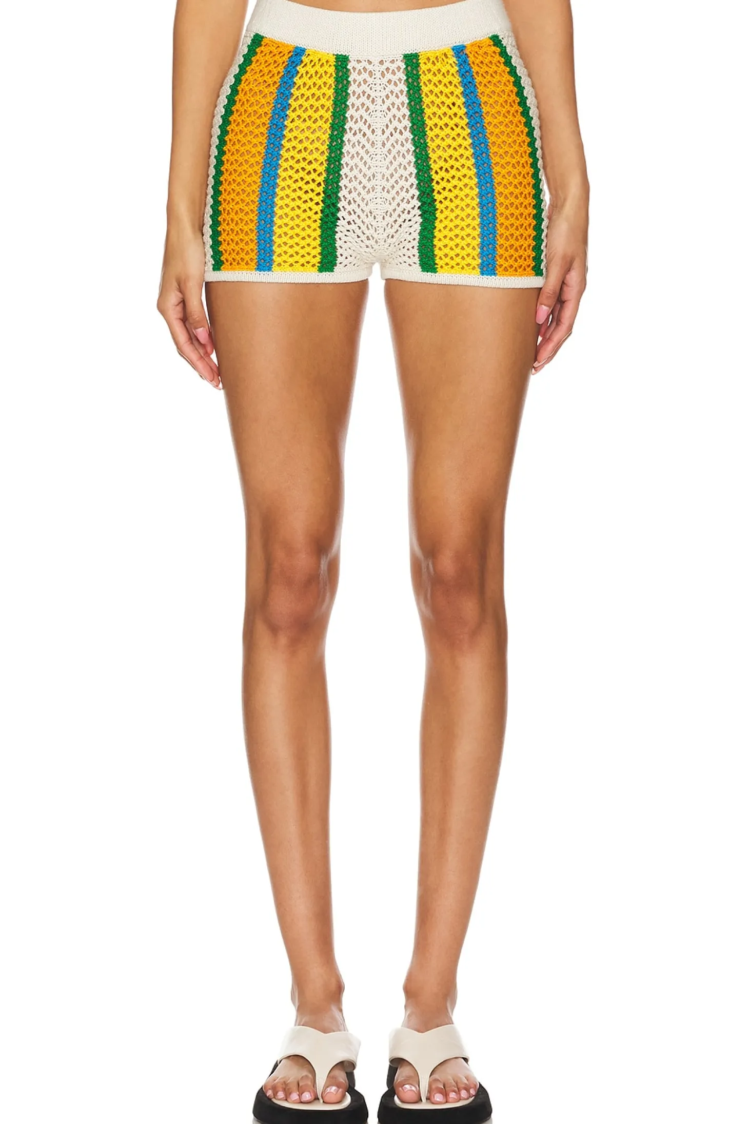 100% cotton.Made in Peru.Hand wash.Pull-on styling with elastic waistband.Lightweight open crochet fabric.Item not sold as a set.Shorts measure approx 12.5" in length