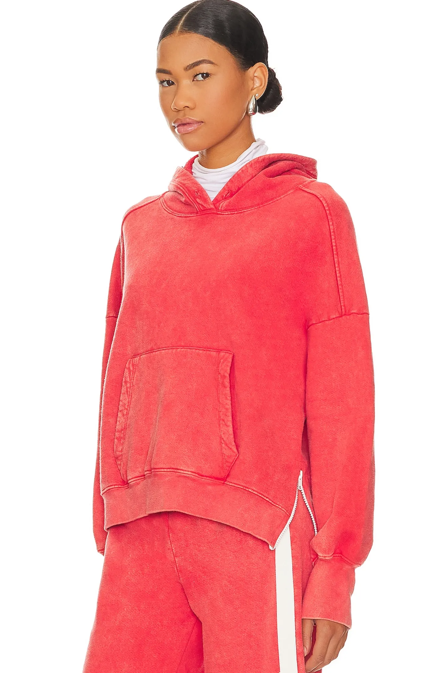 Cotton blend fabric.Made in USA.Machine wash recommended.Front kangaroo pocket.Zipper accent at side hem.Item not sold as set